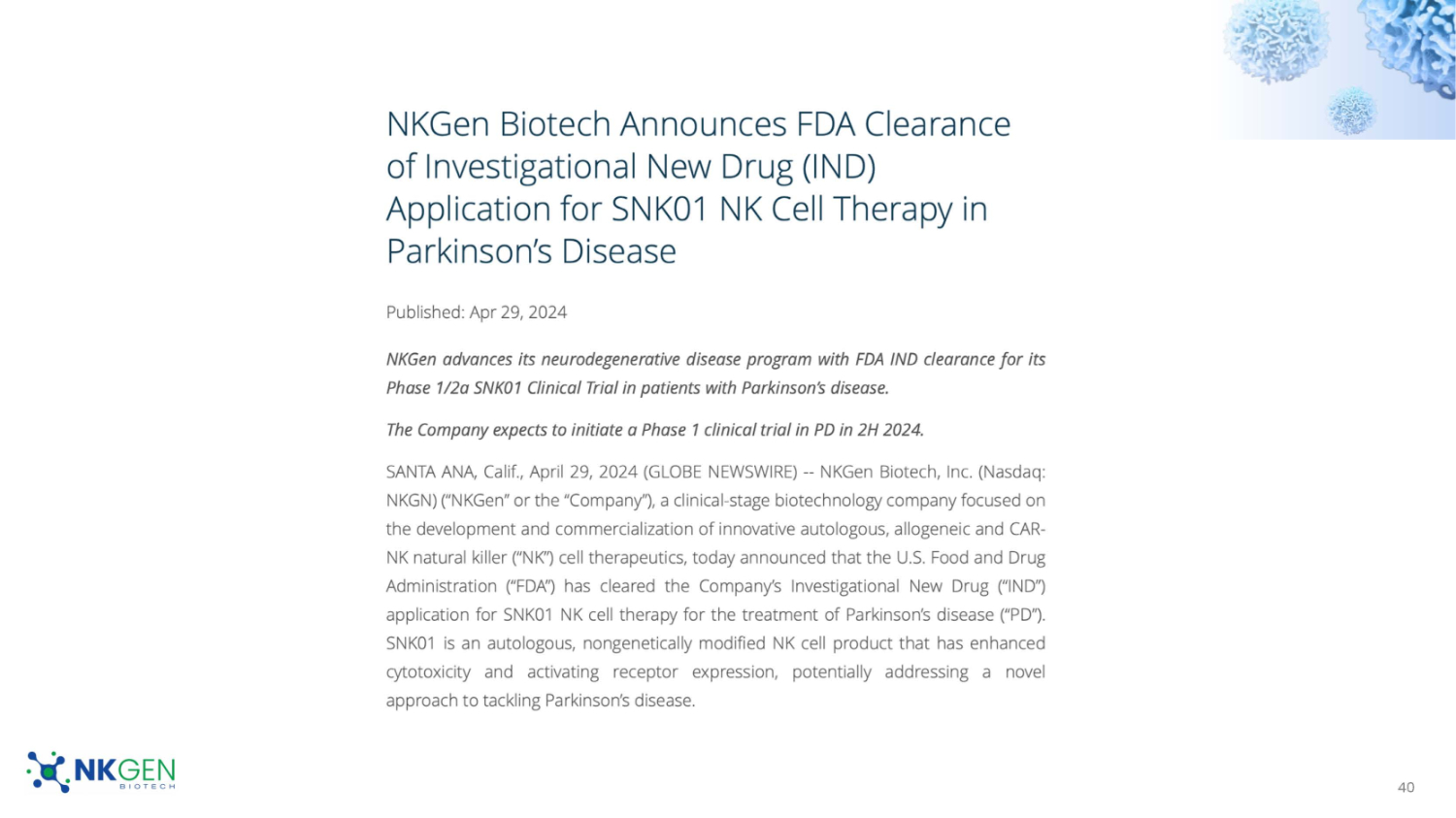 EX-99.1 2 ea021334401ex99-1_nkgen.htm NKGEN BIOTECH, INC. SLIDE PRESENTATION DATED SEPTEMBER 9, 2024