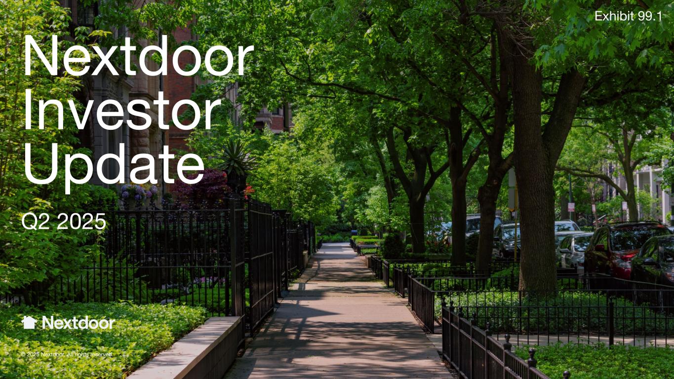 Nextdoor Investor Update Q2 2025 © 2025 Nextdoor. All rights reserved. Exhibit 99.1