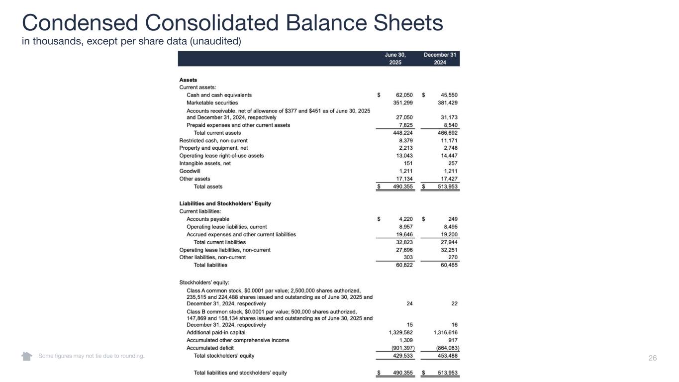 26 Condensed Consolidated Balance Sheets in thousands, except per share data (unaudited) Some figures may not tie due to rounding.