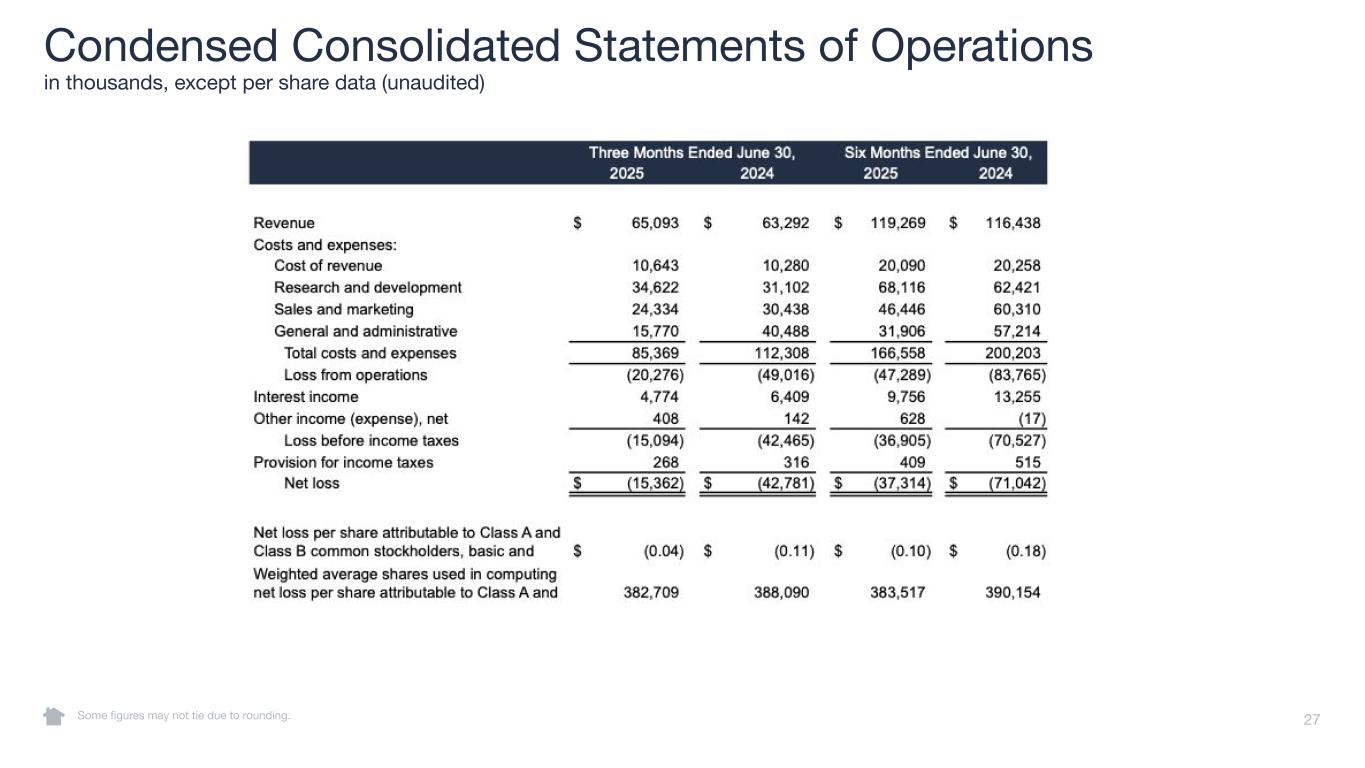 27 Condensed Consolidated Statements of Operations in thousands, except per share data (unaudited) Some figures may not tie due to rounding.