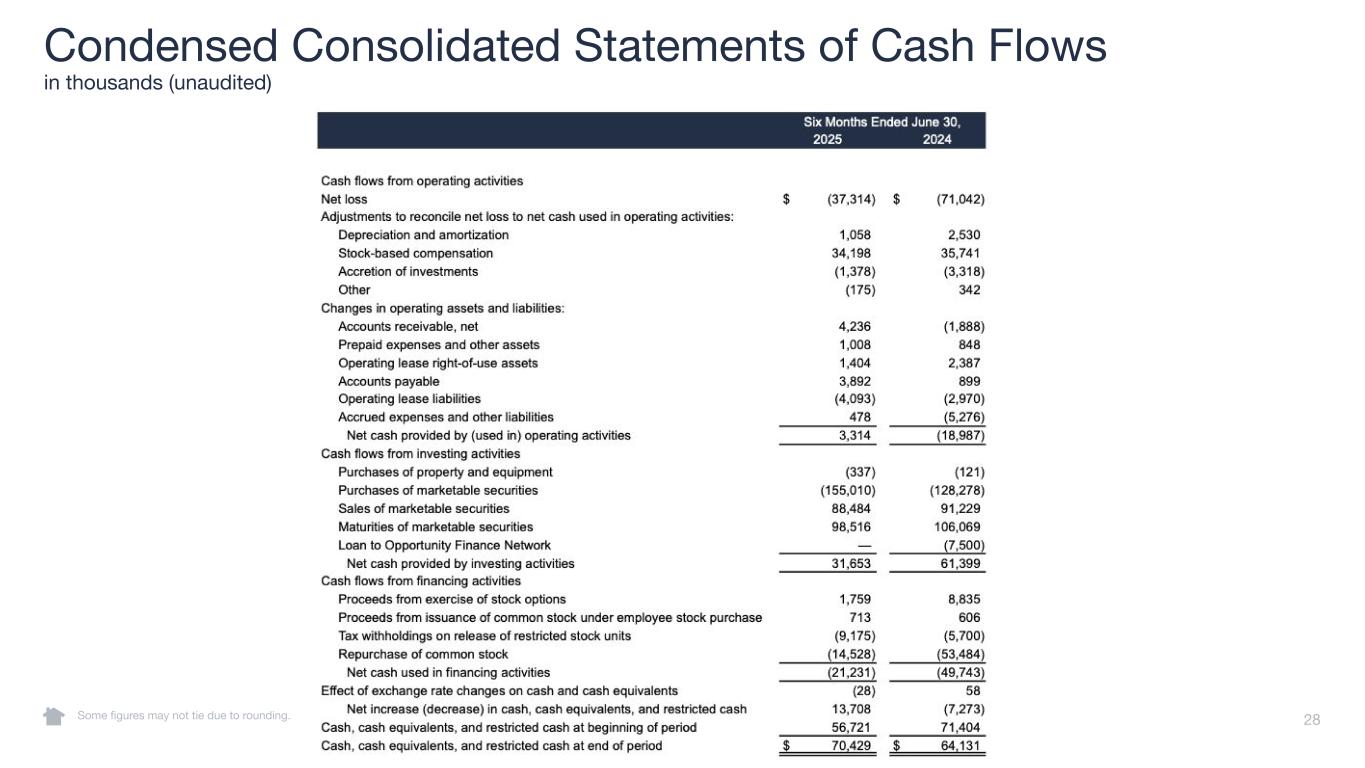 28 Condensed Consolidated Statements of Cash Flows in thousands (unaudited) Some figures may not tie due to rounding.