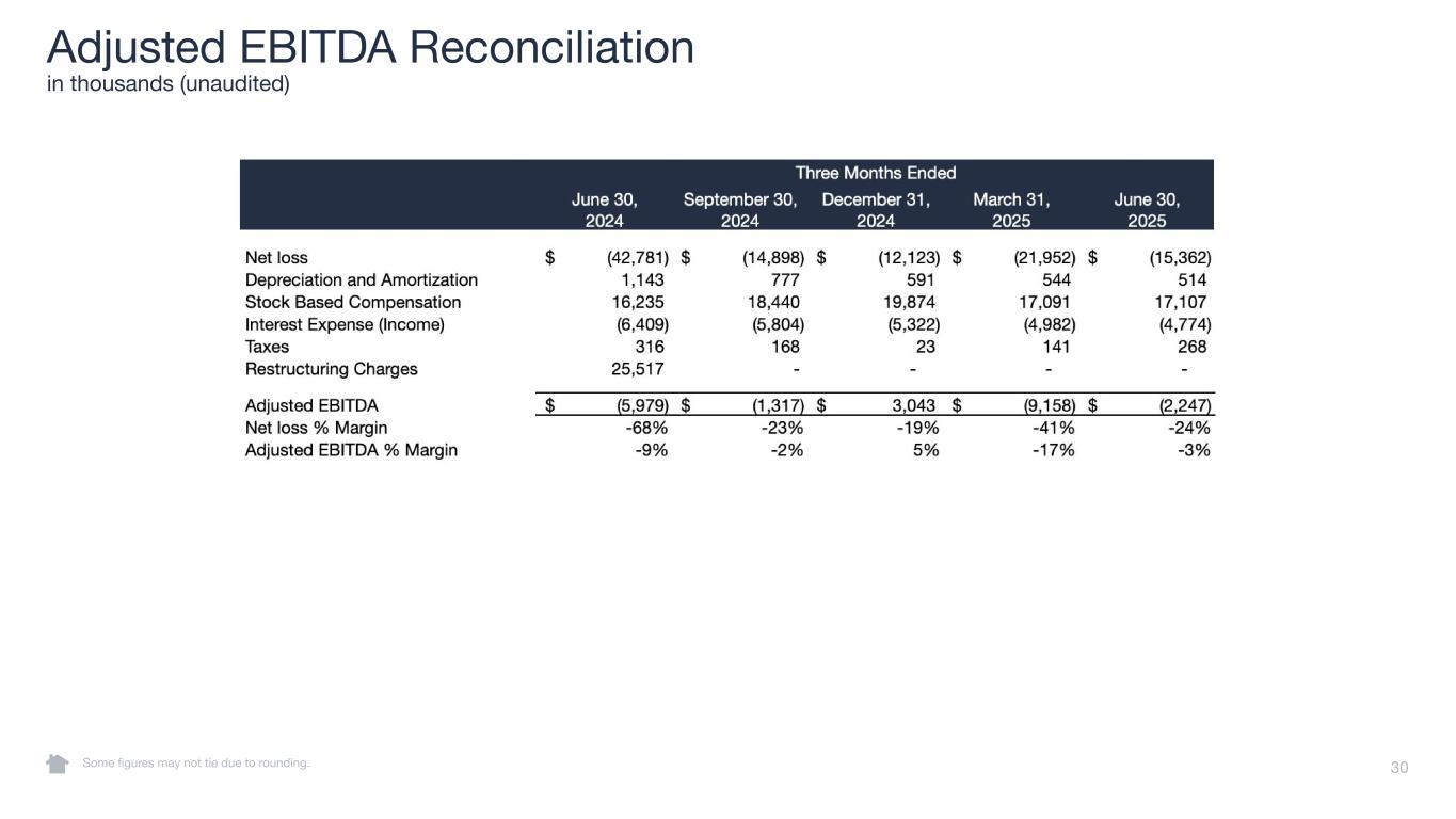 30 Adjusted EBITDA Reconciliation in thousands (unaudited) Some figures may not tie due to rounding.