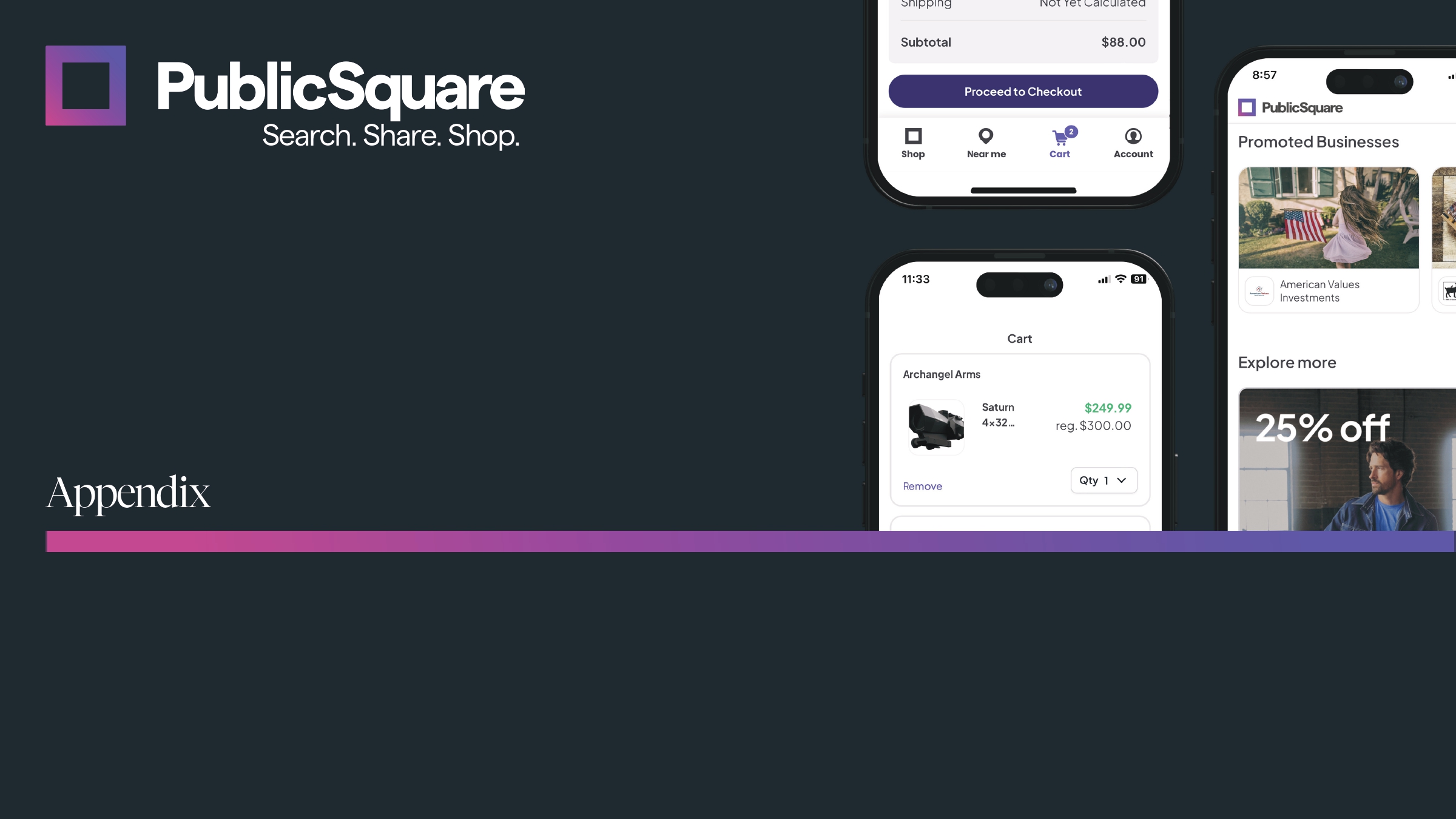 Appendix Search. Share. Shop.