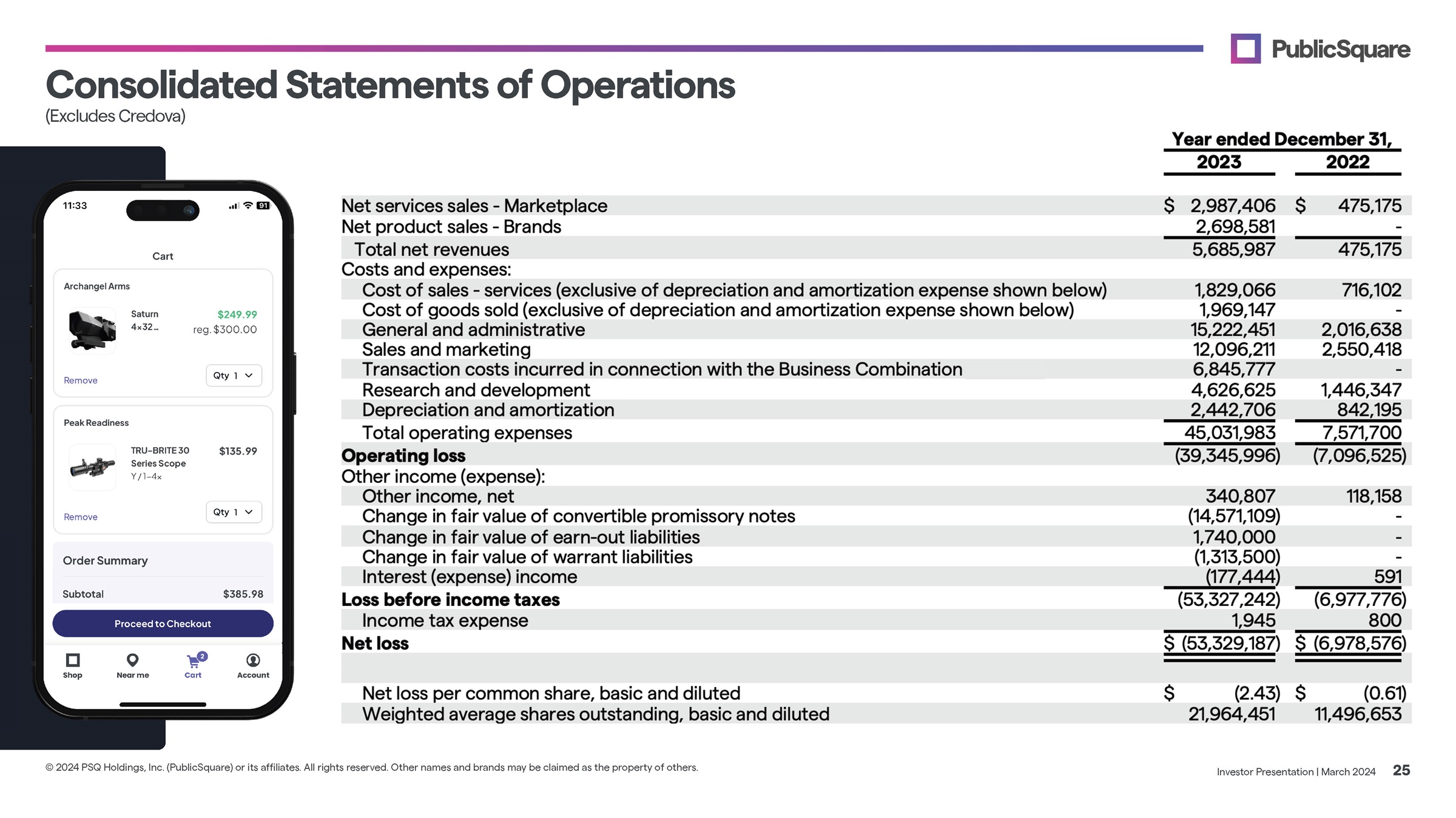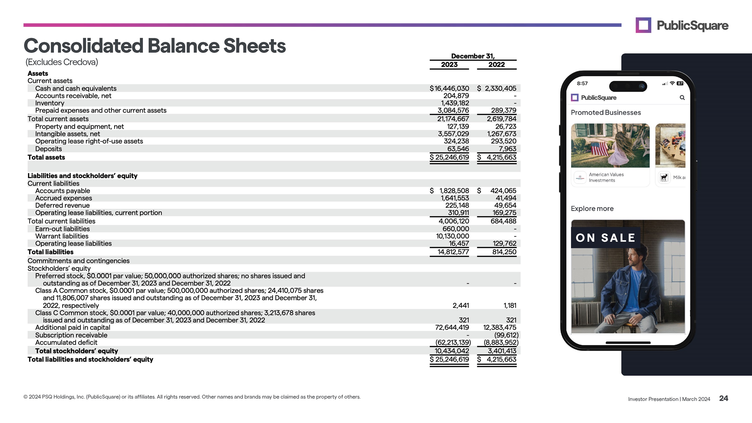 Condensed Consolidated Balance Sheets Investor Presentation | March 2024 24 © 2024 PSQ Holdings, Inc. (PublicSquare) or its affiliates. All rights reserved. Other names and brands may be claimed as the property of others.