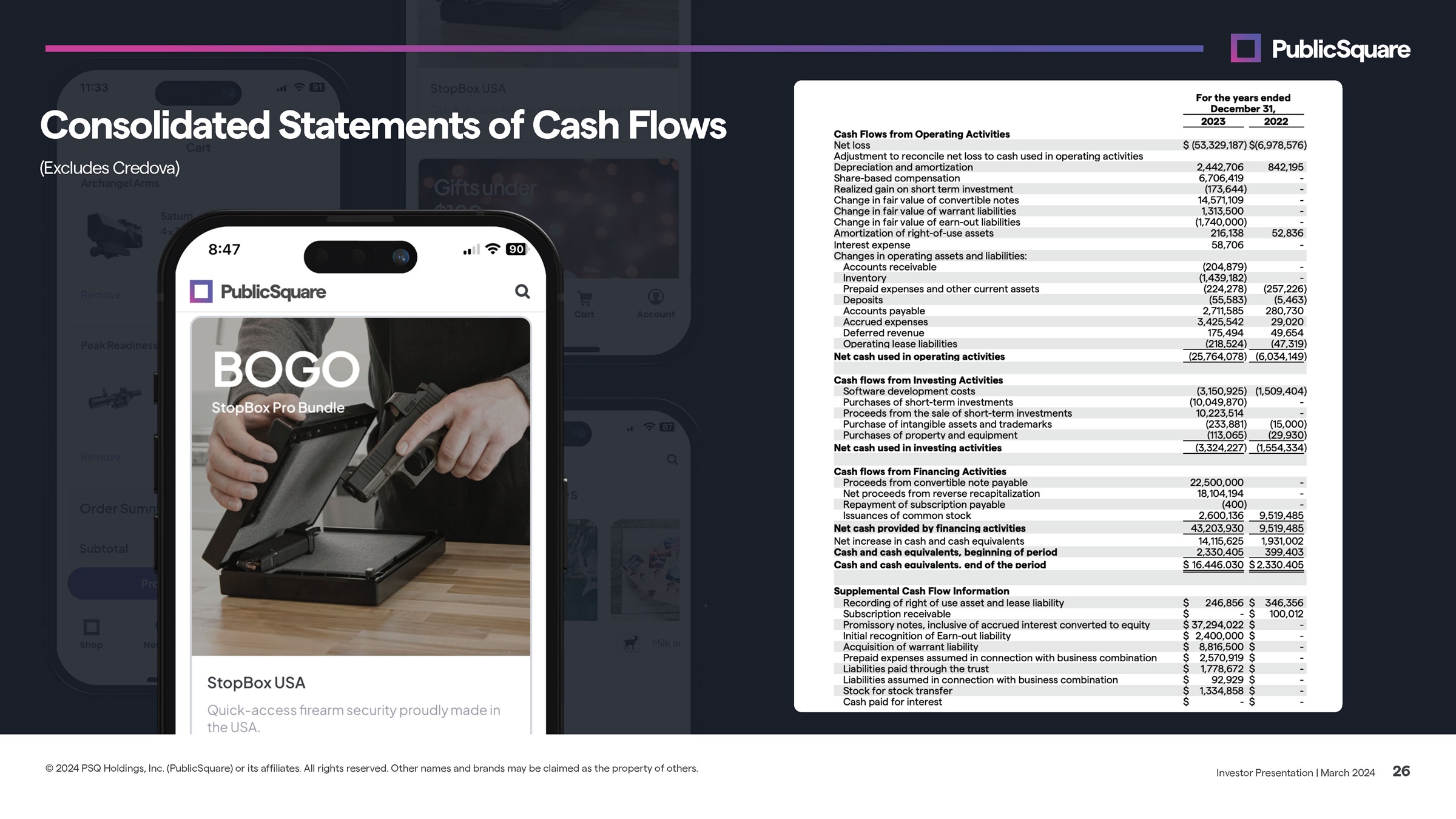 Condensed Consolidated Statements of Operations Investor Presentation | March 2024 25 © 2024 PSQ Holdings, Inc. (PublicSquare) or its affiliates. All rights reserved. Other names and brands may be claimed as the property of others.