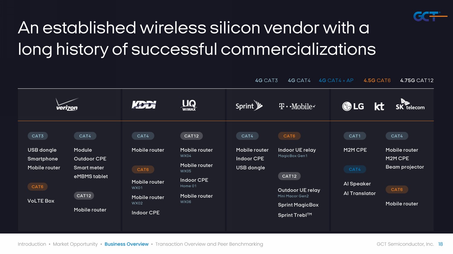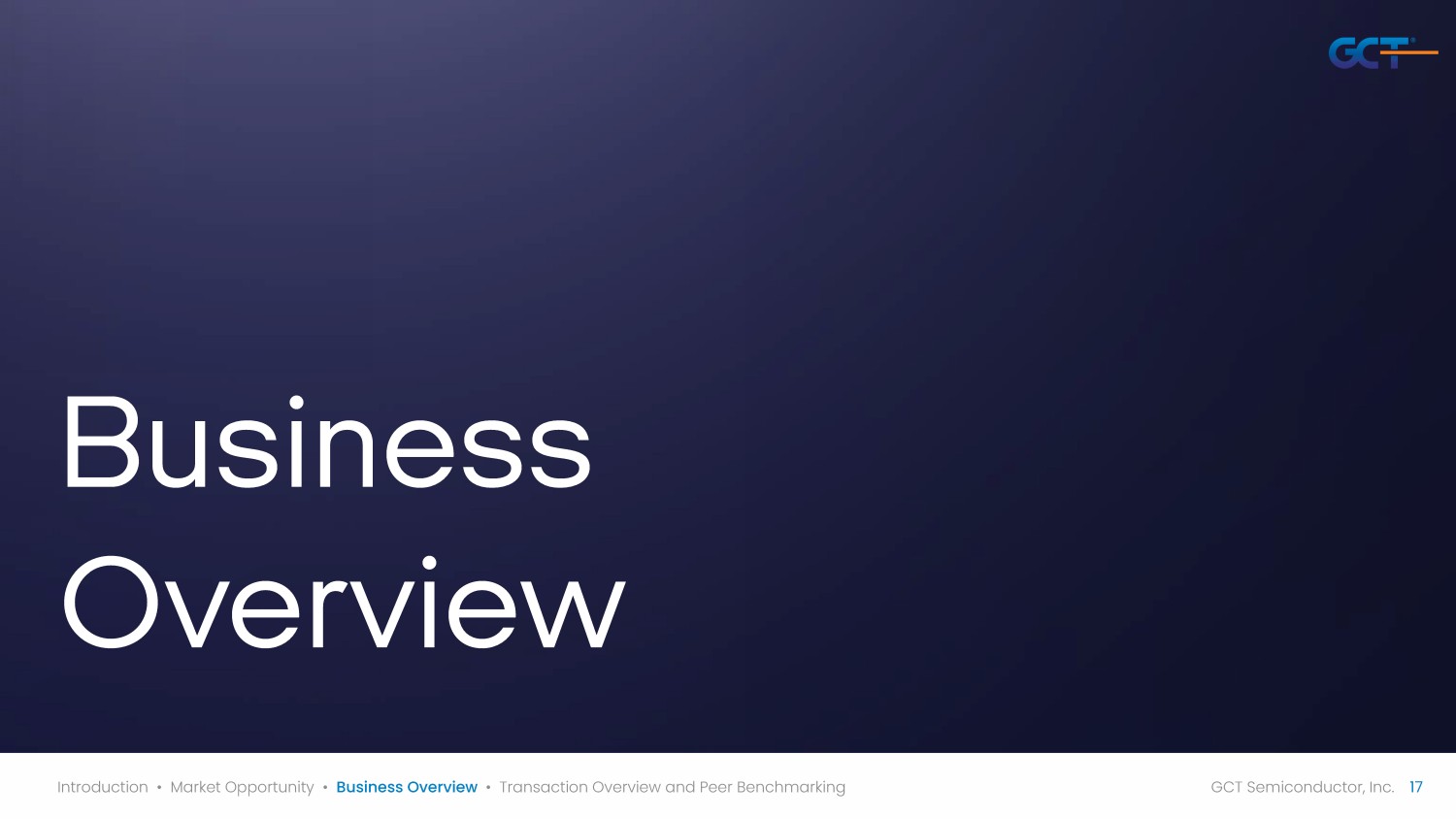 GCT Semiconductor, Inc. 17 Business Overview Introduction • Market Opportunity • Business Overview • Transaction Overview and Peer Benchmarking
