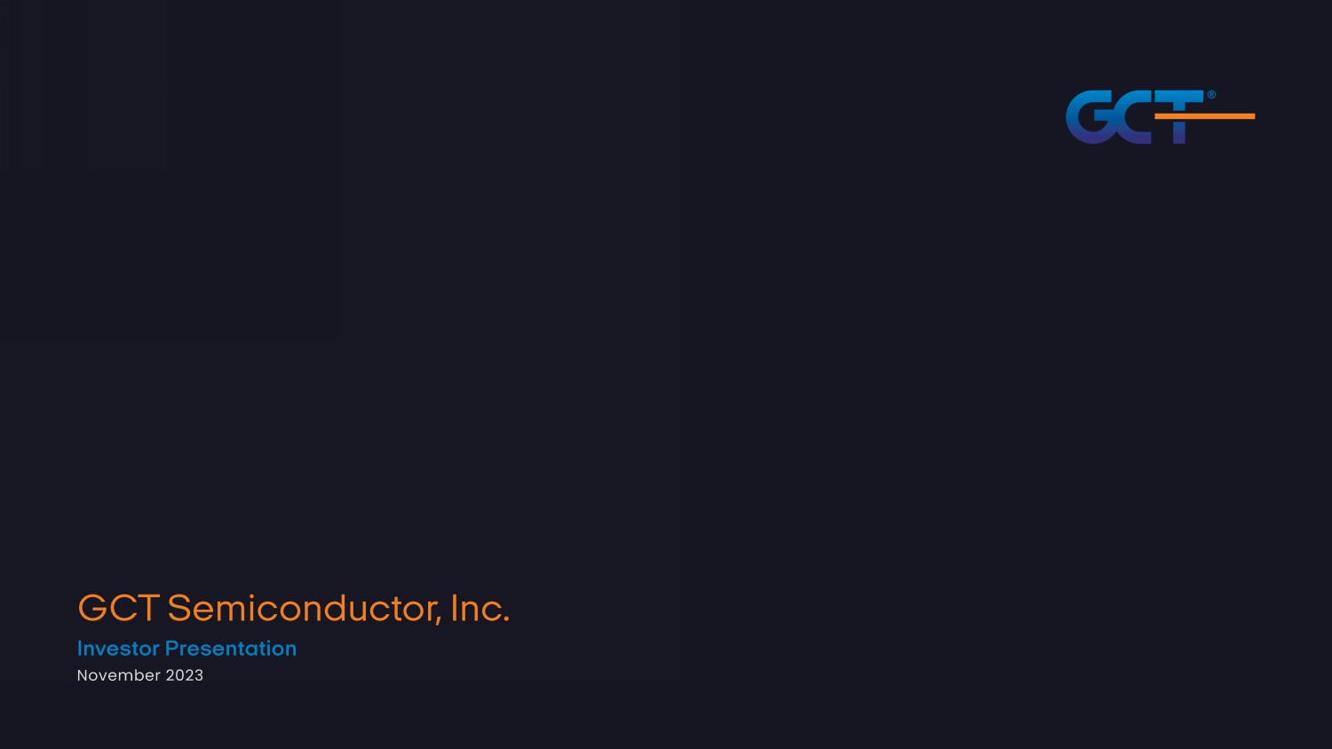 GCT Semiconductor, Inc. GCT Semiconductor, Inc. Investor Presentation November 2023