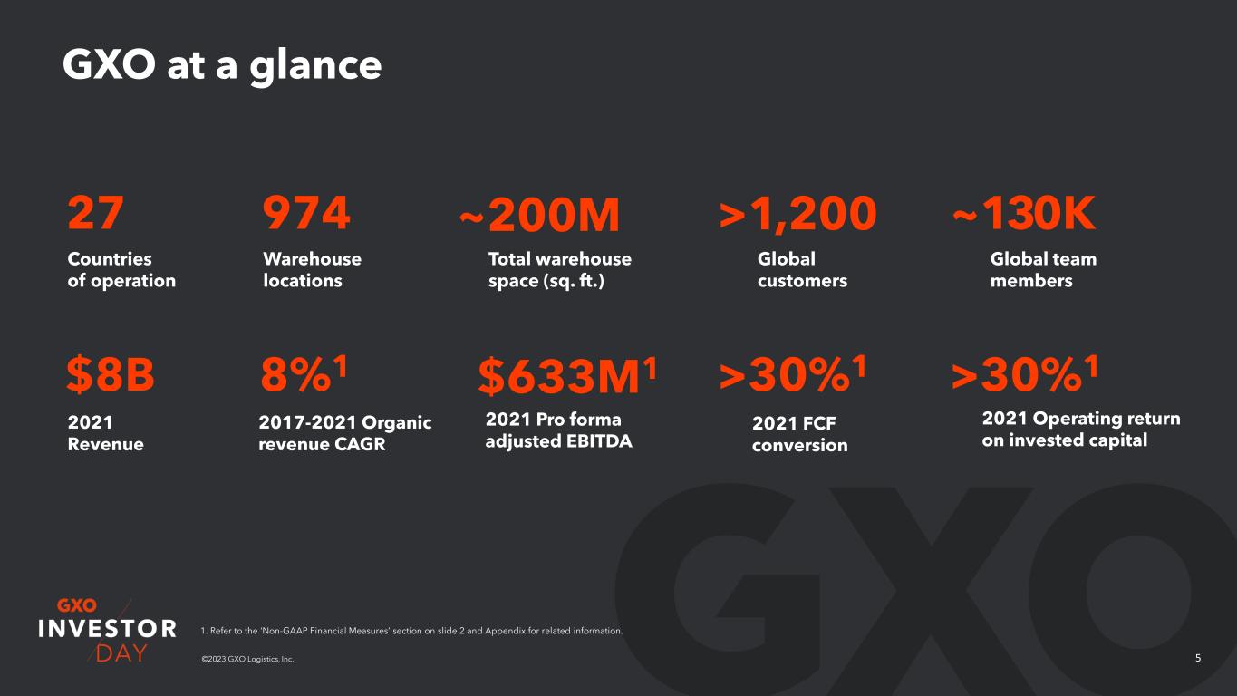 4©2023 GXO Logistics, Inc. Our industry-leading combination of scale, technology and expertise enables supply chain excellence for customers all over the world.