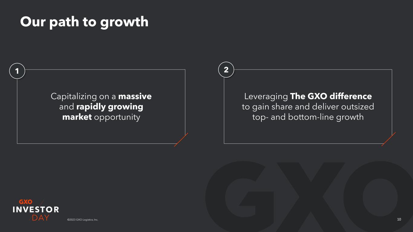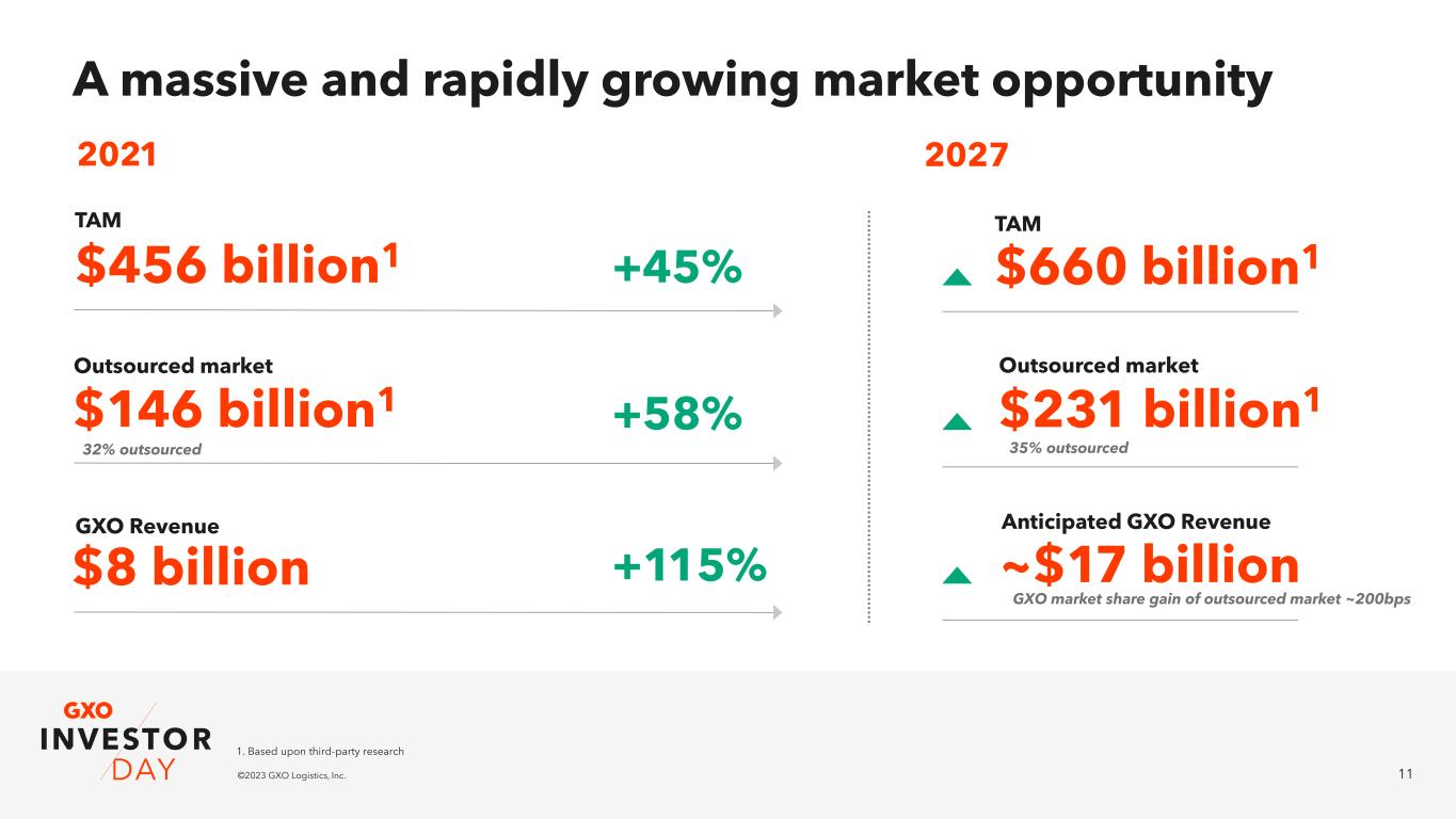 10©2023 GXO Logistics, Inc. Our path to growth 1 2 Capitalizing on a massive and rapidly growing market opportunity Leveraging The GXO difference to gain share and deliver outsized top- and bottom-line growth