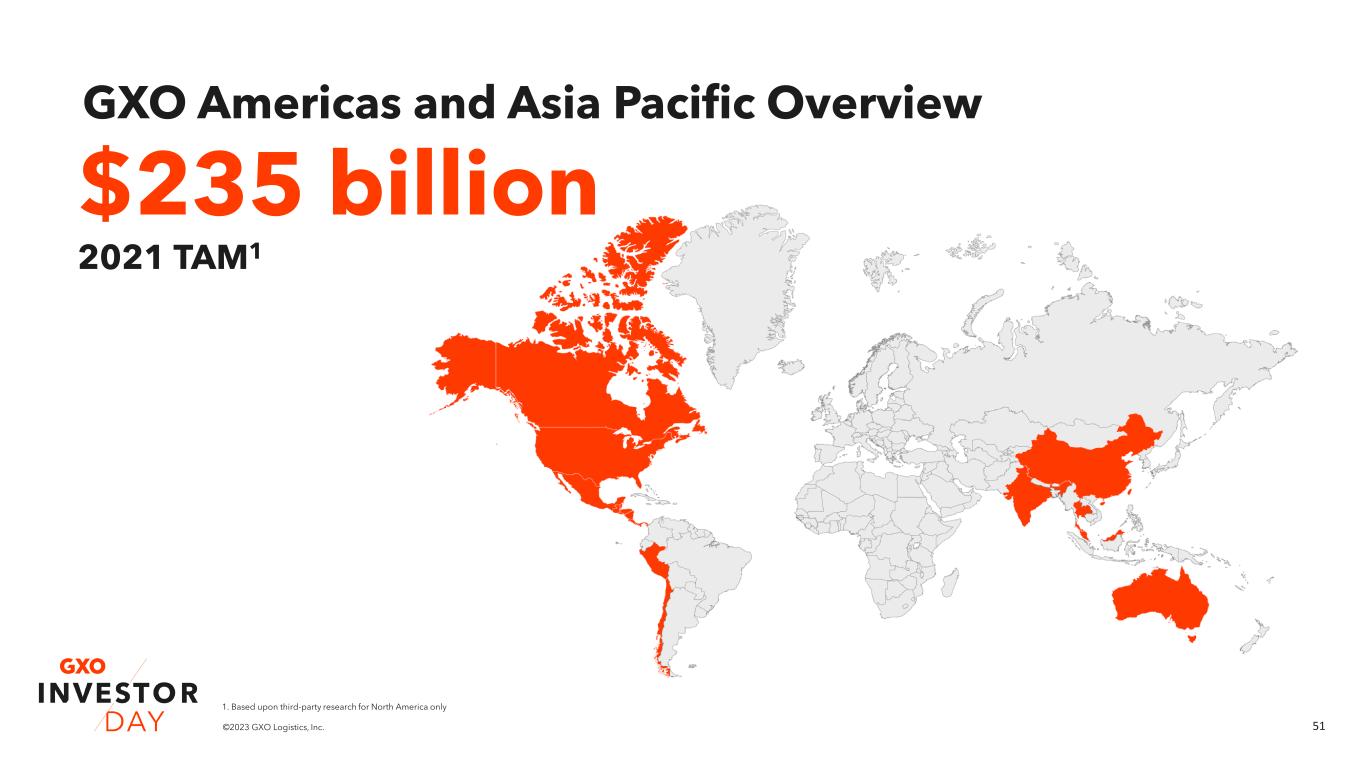 51©2023 GXO Logistics, Inc. GXO Americas and Asia Pacific Overview $235 billion 2021 TAM1 1. Based upon third-party research for North America only