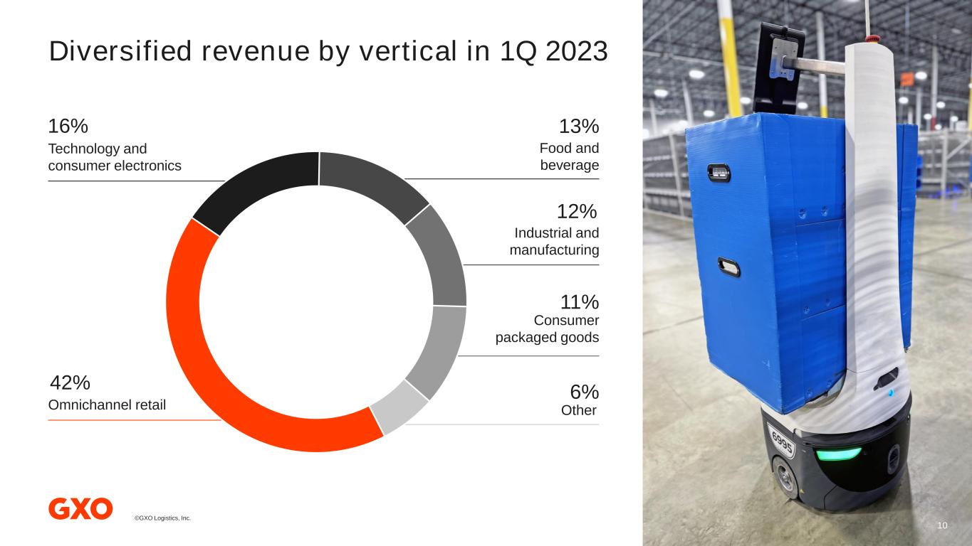 9©GXO Logistics, Inc. 1Q 2023 contract wins by source 54% New activity 24% Won from competitors 22% New outsourcing 9
