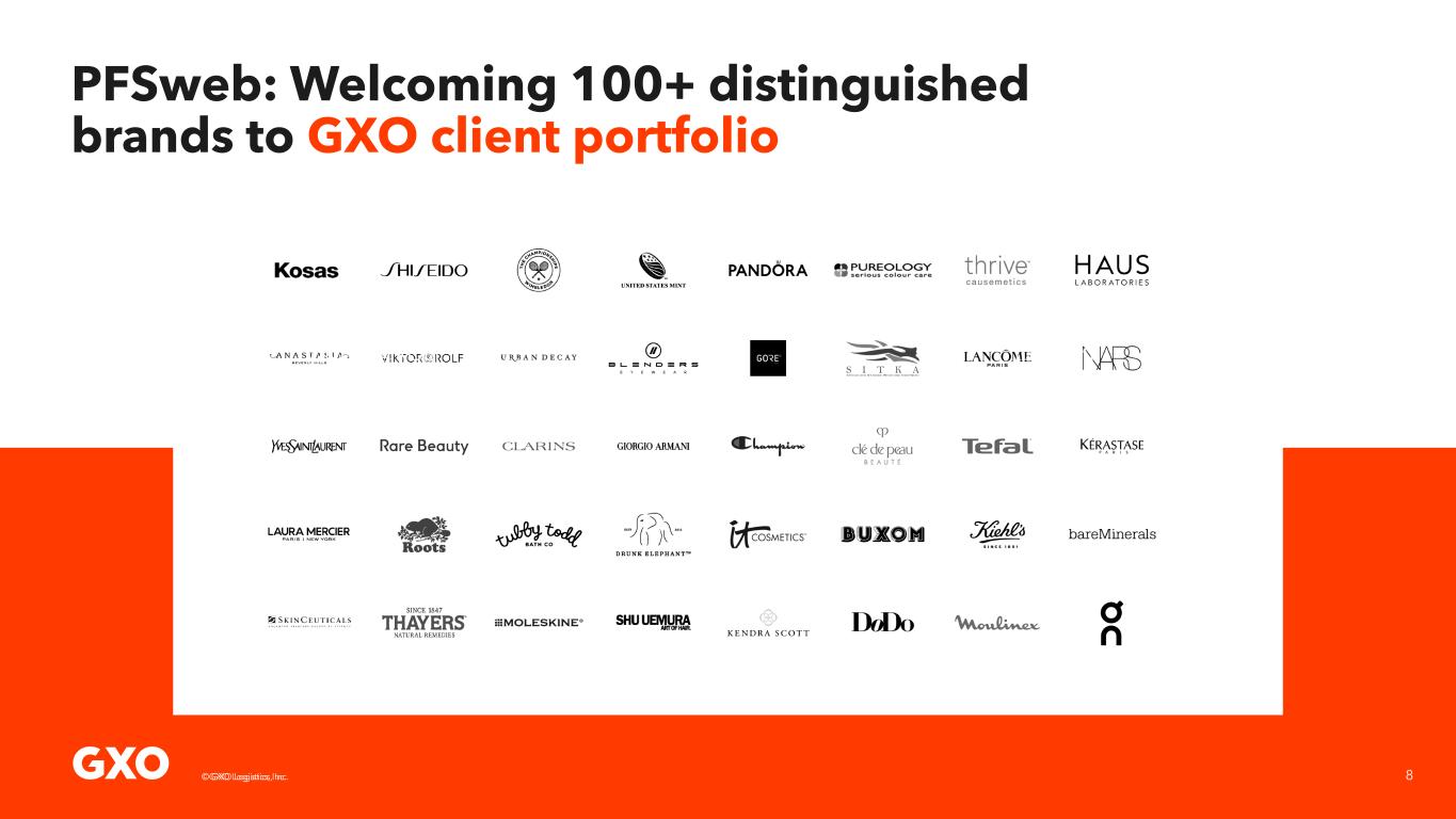 © GXO Logistics, Inc. X Logistics, Inc. PFSweb: Welcoming 100+ distinguished brands to GXO client portfolio 8