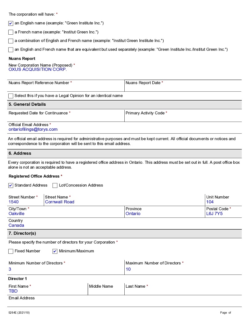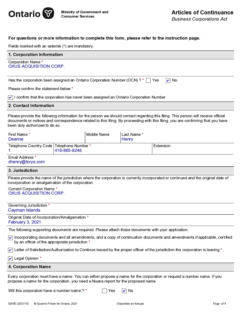 OXUS Acquisition Corp.,
