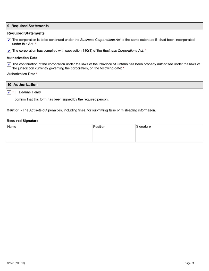 This By-Law No. 1 was made by the directors of the Corporation on [●], 2023 and confirmed by the shareholders of the Corporation on [●], 2023.