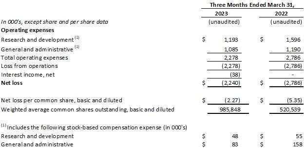 Research and development expenses were $1.2 million for the quarter ended March 31, 2023, compared to $1.6 million for the quarter ended March 31, 2022. The decrease in research and development expenses was due to decreased clinical expenses, offset by increased non-clinical and CMC expenses for the DMT310 program.