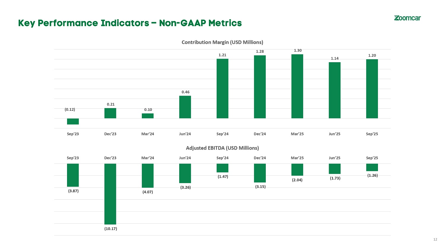 (0.12) 0.21 0.10 0.46 1.21 1.28 1.30 1.14 1.20 Sep'23 Dec'23 Mar'24 Jun'24 Sep'24 Dec'24 Mar'25 Jun'25 Sep'25 Contribution Margin (USD Millions) (3.87) 12 (10.17) (4.07) (3.26) (1.47) (3.15) (2.04) (1.73) (1.26) Sep'23 Dec'23 Mar'24 Adjusted EBITDA (USD Millions) Jun'24 Sep'24 Dec'24 Mar'25 Jun'25 Sep'25