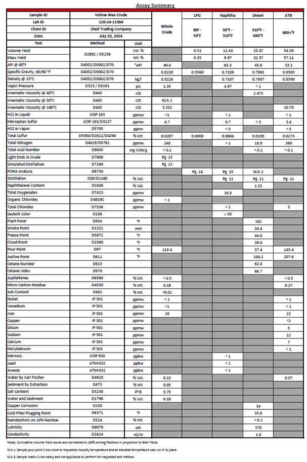 TYPICAL CRUDE OIL SPECIFICATIONS