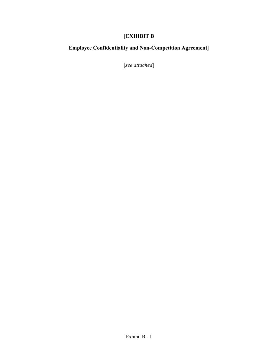 Exhibit B - 1 [EXHIBIT B Employee Confidentiality and Non-Competition Agreement] [see attached]