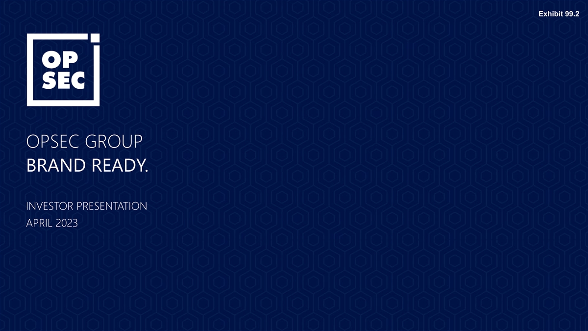 Exhibit 99.2 OPSEC GROUP BRAND READY. INVESTOR PRESENTATION APRIL 2023