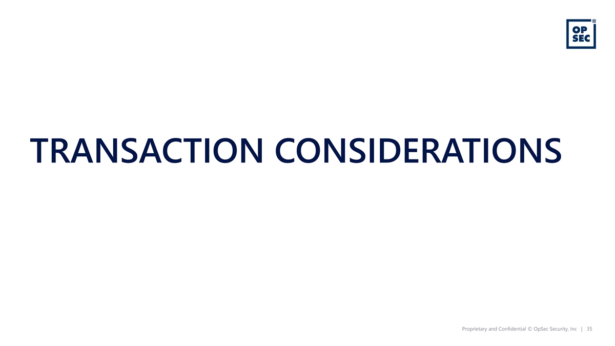 TRANSACTION CONSIDERATIONS Proprietary and Confidential © OpSec Security, Inc | 35