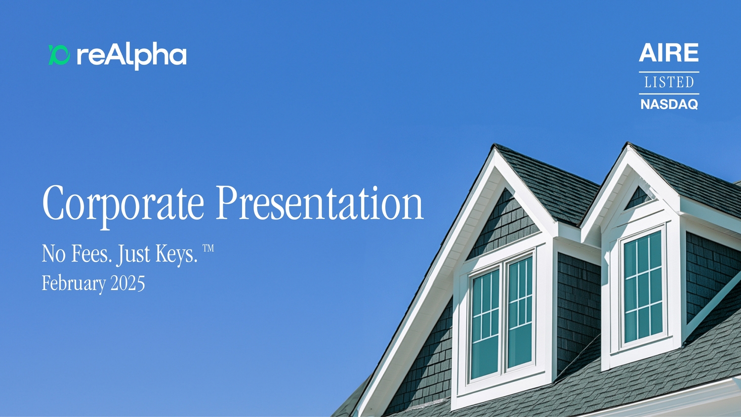 LISTED NASDAQ AIRE Corporate Presentation No Fees. Just Keys. TM February 2025
