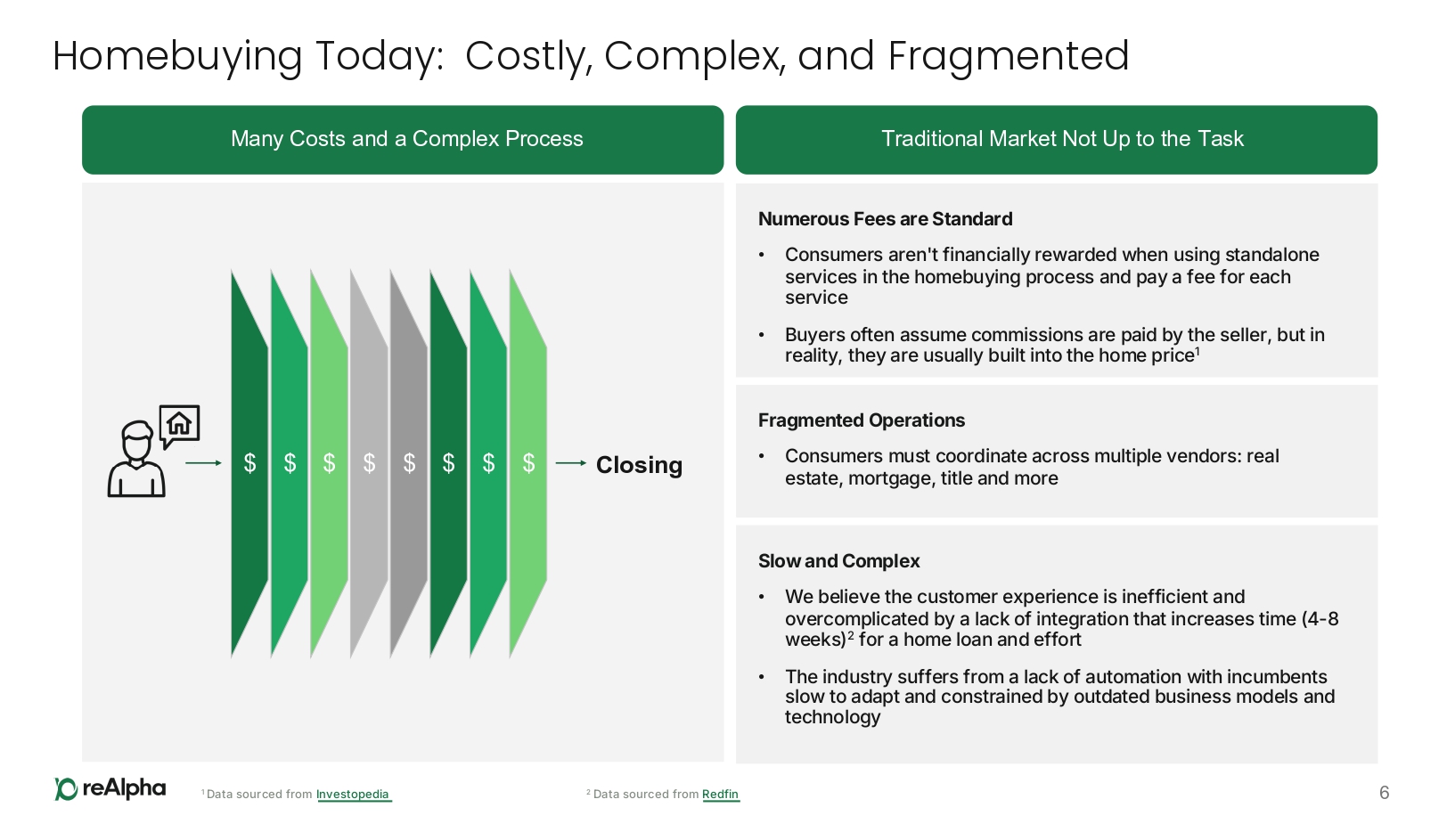 $3.4 Trillion U.S. Real Estate Market Represents Significant Opportunity 5 U.S. Housing Market ~$85B Total Commissions Paid (2025) U.S. Housing Market data sourced from Redfin and Clever Real Estate [4.1] $1.5T Total Home Transactions Value ~$21B Total Mortgage Broker Commissions $1.9T Total Value of Mortgages Originated ~$17.1B Total Title Insurance Revenue U.S. Mortgage Origination Market U.S. Title Insurance Market U.S. Title Insurance Market sourced from I BISWorld for calendar year 2025 U.S. Mortgage Origination Market sourced from T rading Economics and Consumer Affair [4.2] and includes refinances $3.4T is the sum of the Total Home Transactions Value and the Total Value of Mortgage Originated
