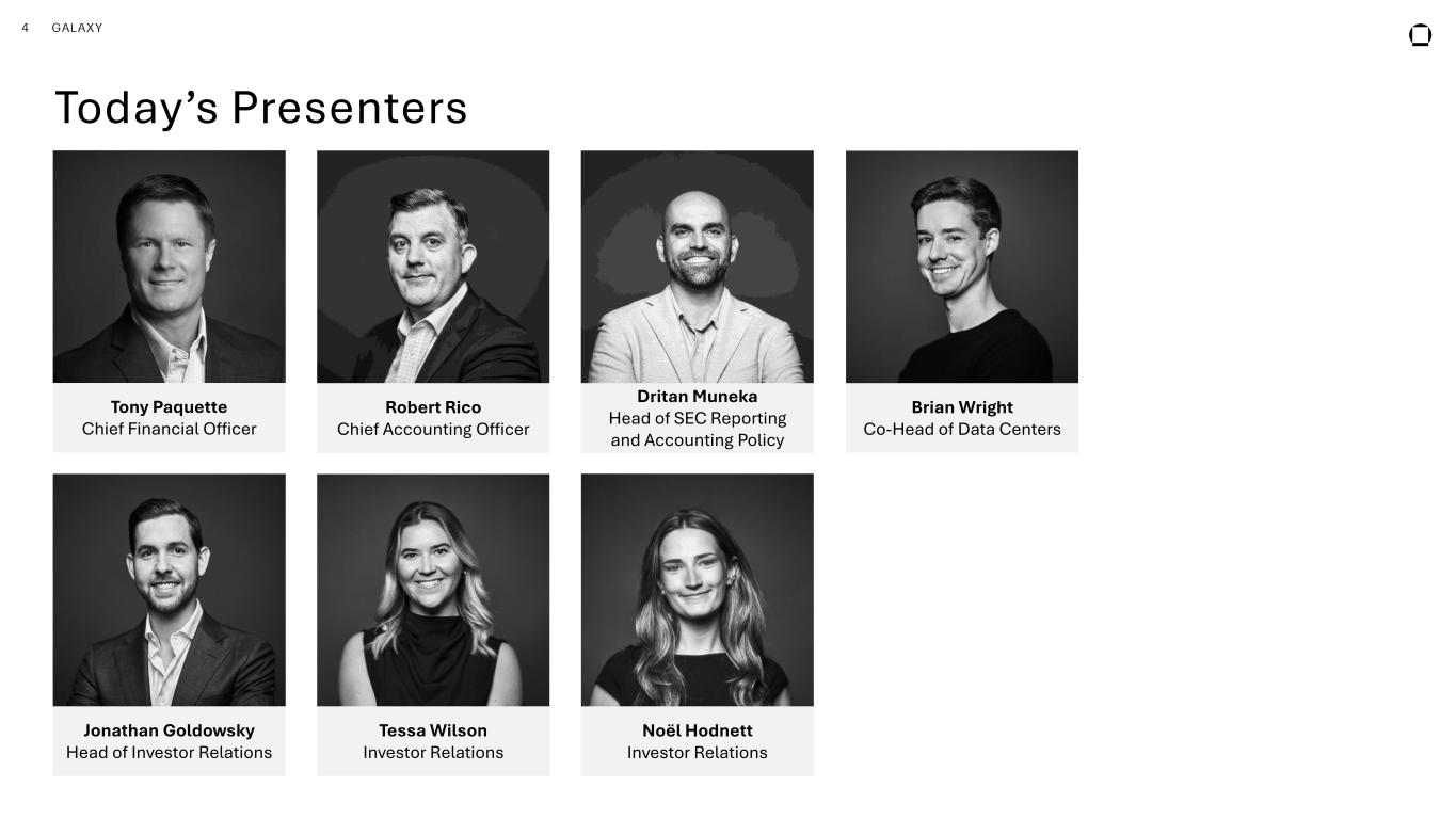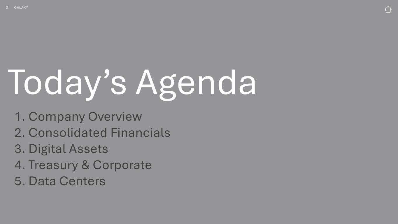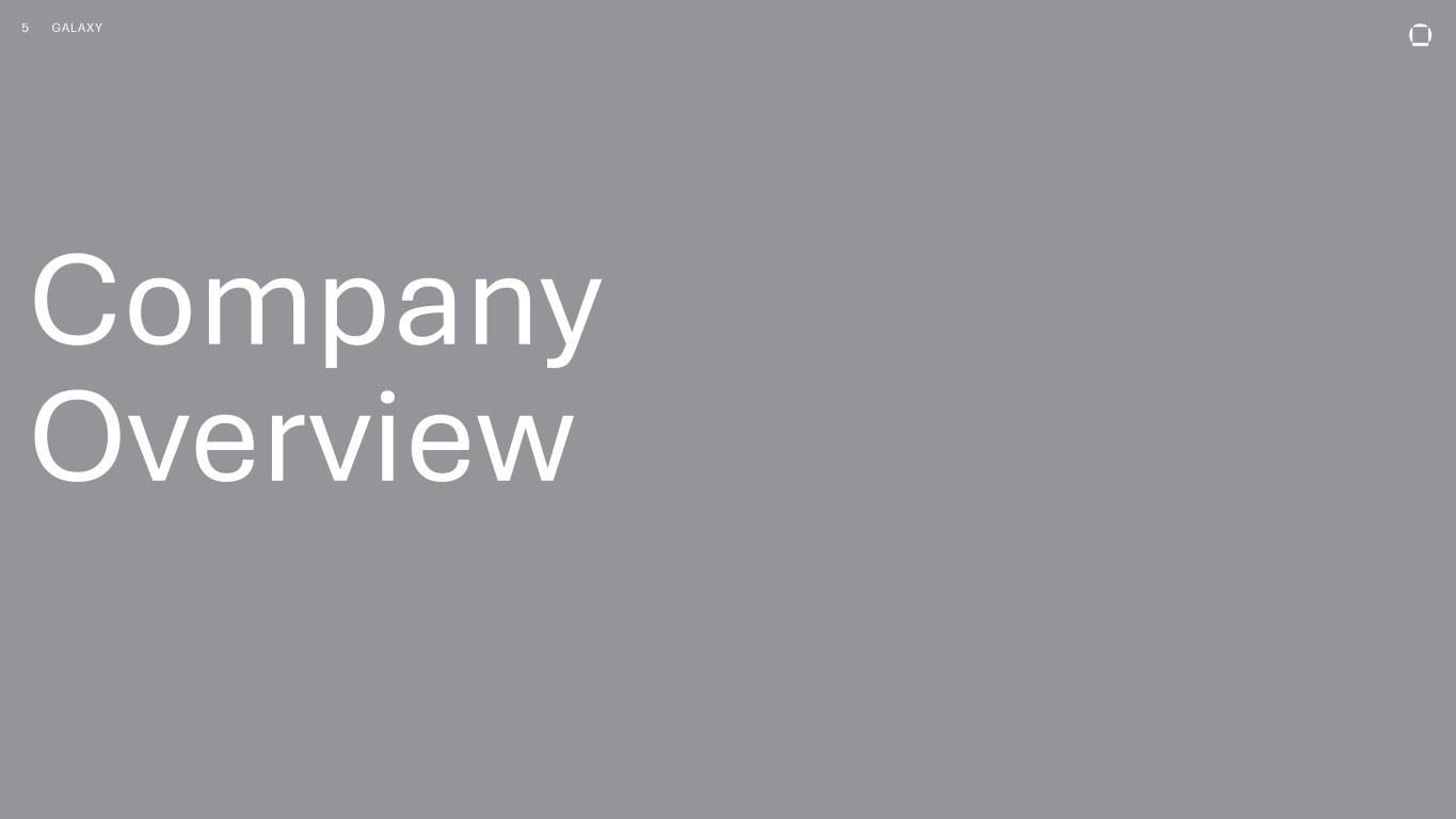 3 GALAXY Today’s Agenda 1. Company Overview 2. Consolidated Financials 3. Digital Assets 4. Treasury & Corporate 5. Data Centers
