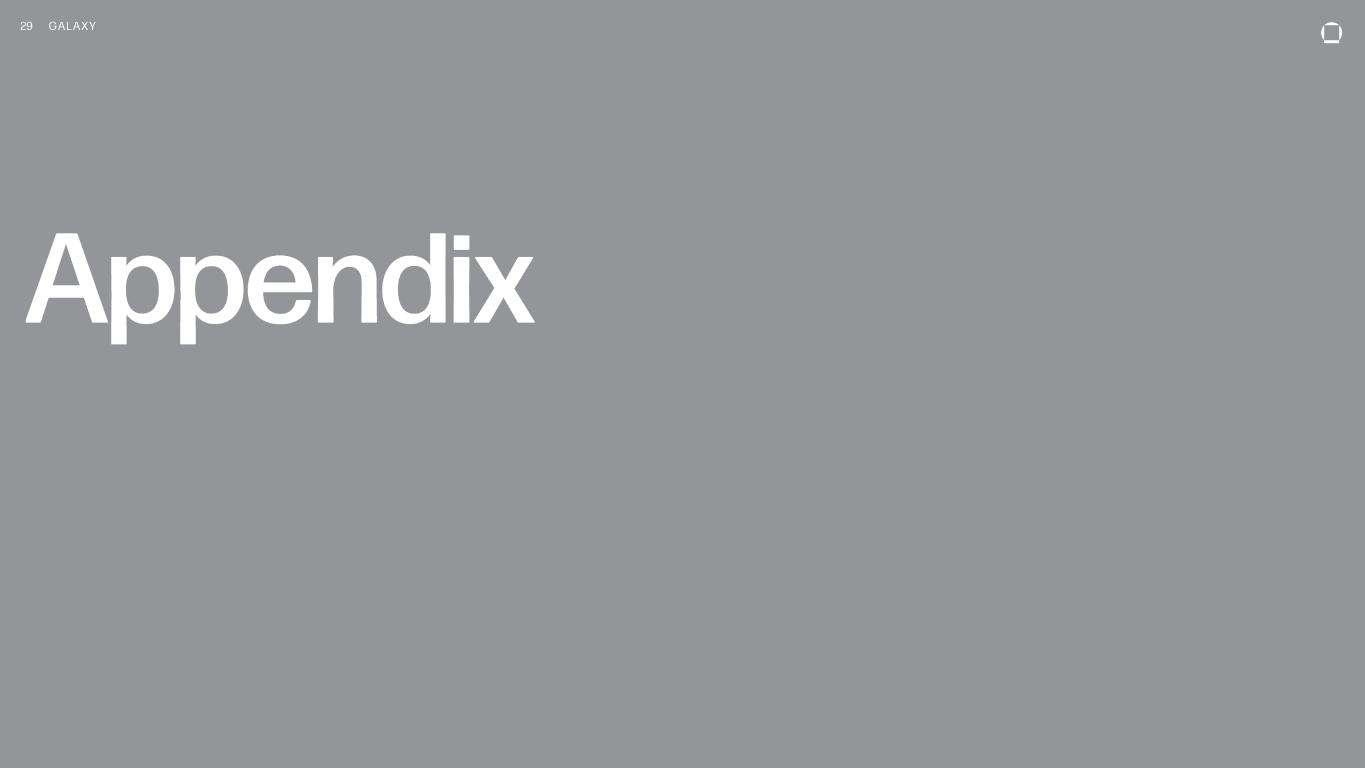 28 GALAXY Helios – Key Metrics (cont’d) ▪ Once Phase I is operational and generating revenue, we expect to refinance the construction loan and replace it with a long-term loan based on the market value of the data center rather than its build cost ▪ The appraised market value of the stabilized data center will be determined by the net operating income of the data center divided by a cap rate, which can be derived from yields for similar assets Illustrative Equity Takeout Example: Construction Loan Assumptions: ▪ Total Project Cost: $1B ▪ Principal of Construction Loan: $1B * 80% loan-to-cost = $800M ▪ Interest Rate: 10% Refinancing Loan Assumptions (Stabilized Asset): ▪ Implied Valuation = $150M Net Operating Income / 7% cap rate = $2.1B ▪ Principal of Refinanced Loan: $2.1B * 60% loan-to-value = $1.3B Outcome: ▪ New Loan: $1.3B ▪ Repay Construction Loan of $800M ▪ Equity Takeout: ~$500M Equity Takeout Phase I Financing Overview ▪ Approximate CapEx per MW of critical IT load for Phase I: $13M – Estimated total CapEx for Phase I: $1.75B ▪ Galaxy’s Helios debt facility is a $1.4 billion senior secured term loan provided by Deutsche Bank ▪ The facility is structured on an 80% loan-to-cost (LTC) basis, with Galaxy contributing $350 million of equity ▪ Interest rate: SOFR (subject to a 2.50% floor) + 4.75% ▪ Maturity: 36 months (August 2028) ▪ As of 9/30/2025, Galaxy has drawn $434M of the debt facility ▪ All interest and costs being capitalized until Phase I delivery in 1H26