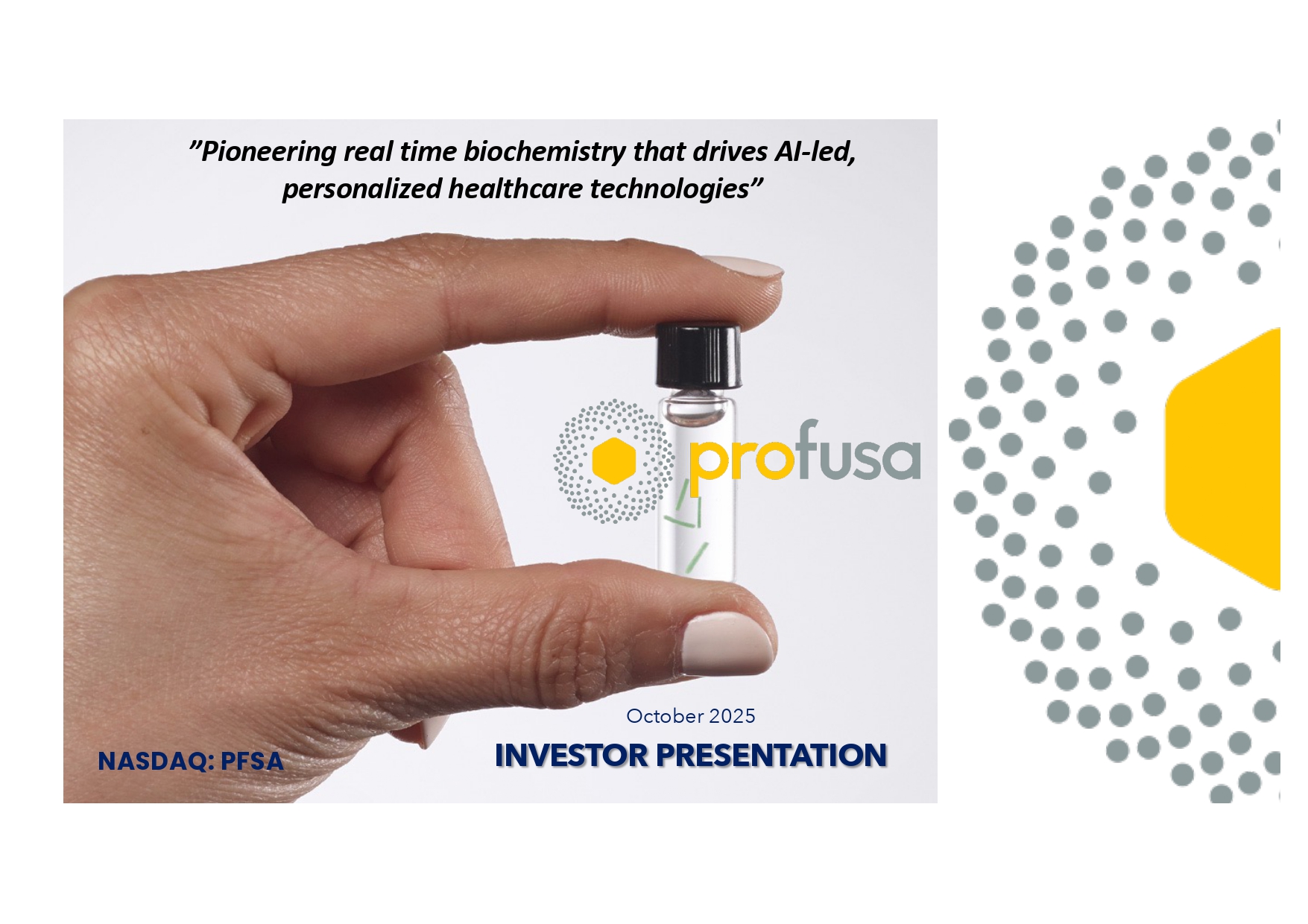 NASDAQ: PFSA October 2025 INVESTOR PRESENTATION ”Pioneering real time biochemistry that drives AI - led, personalized healthcare technologies”