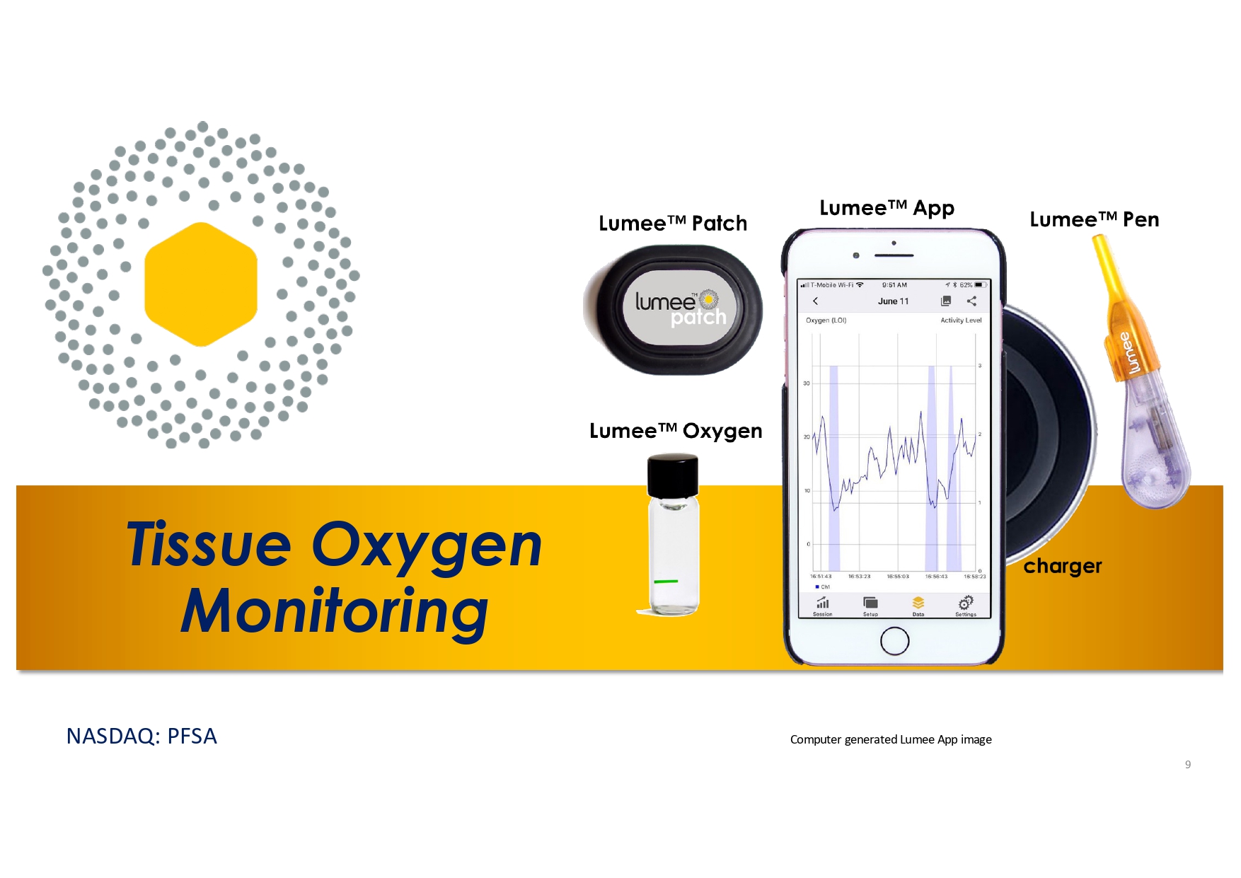 9 Tissue Oxygen Monitoring NASDAQ: PFSA Computer generated Lumee App image