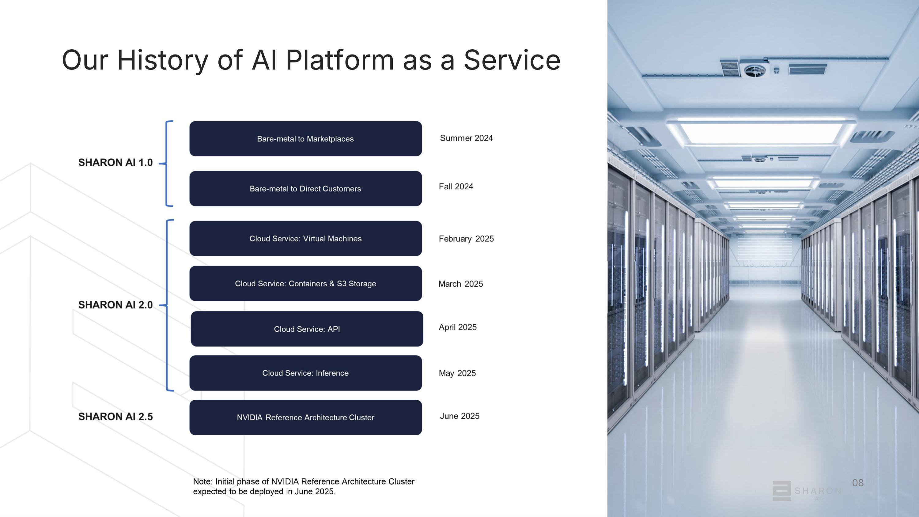 Our History of AI Platform as a Service 08 Note: Initial phase of NVIDIA Reference Architecture Cluster expected to be deployed in June 2025.