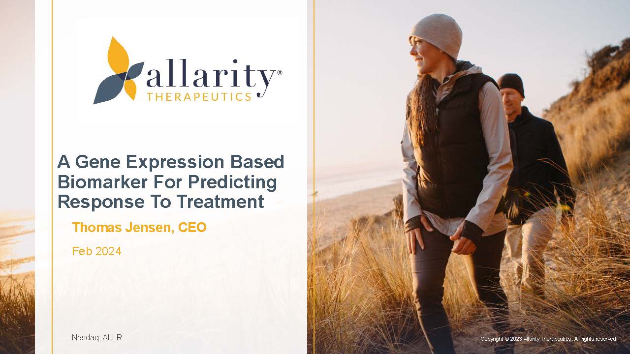 Copyright © 2023 Allarity Therapeutics. All rights reserved. Nasdaq: ALLR A Gene Expression Based Biomarker For Predicting Response To Treatment Thomas Jensen, CEO Feb 2024