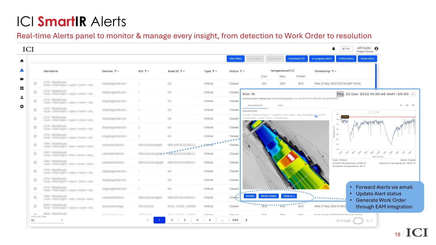 18 ICI Smart IR Alerts Real - time Alerts panel to monitor & manage every insight, from detection to Work Order to resolution 18 • Forward Alerts via email • Update Alert status • Generate Work Order through EAM integration