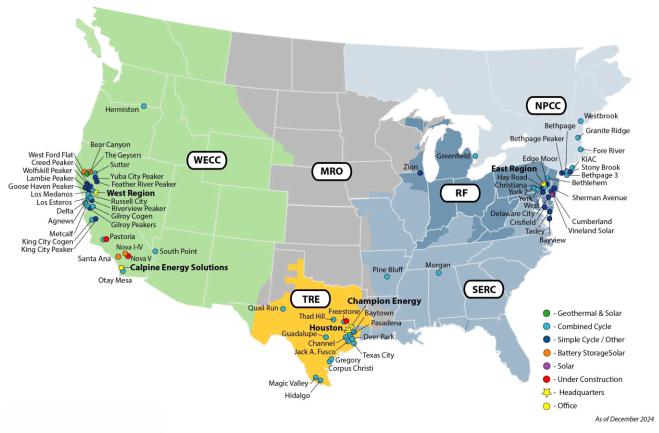 Calpine Solutions   Calpine Energy Solutions, LLC, an indirect, wholly-owned subsidiary of Calpine, is a supplier of power to commercial and industrial retail customers in the United States with customers in 18 states, including presence in California, Texas, the Mid-Atlantic and the Northeast.