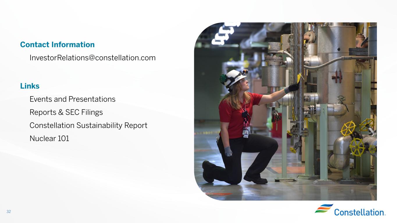 32 Contact Information InvestorRelations@constellation.com Links Events and Presentations Reports & SEC Filings Constellation Sustainability Report Nuclear 101