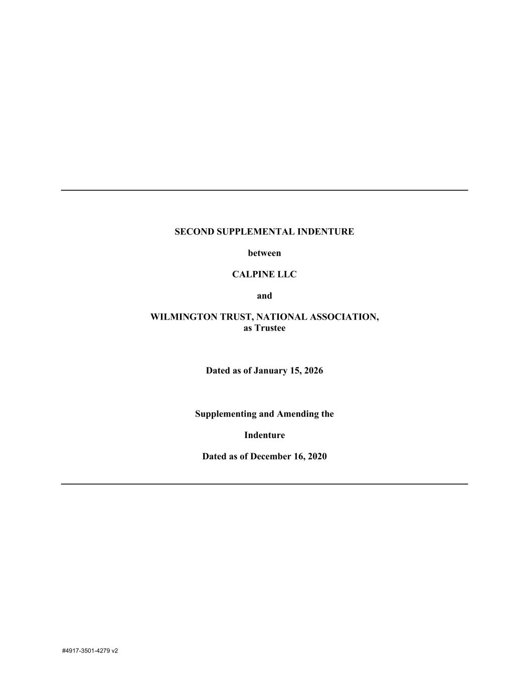 #4917-3501-4279 v2 SECOND SUPPLEMENTAL INDENTURE between CALPINE LLC and WILMINGTON TRUST, NATIONAL ASSOCIATION, as Trustee Dated as of January 15, 2026 Supplementing and Amending the Indenture Dated as of December 16, 2020