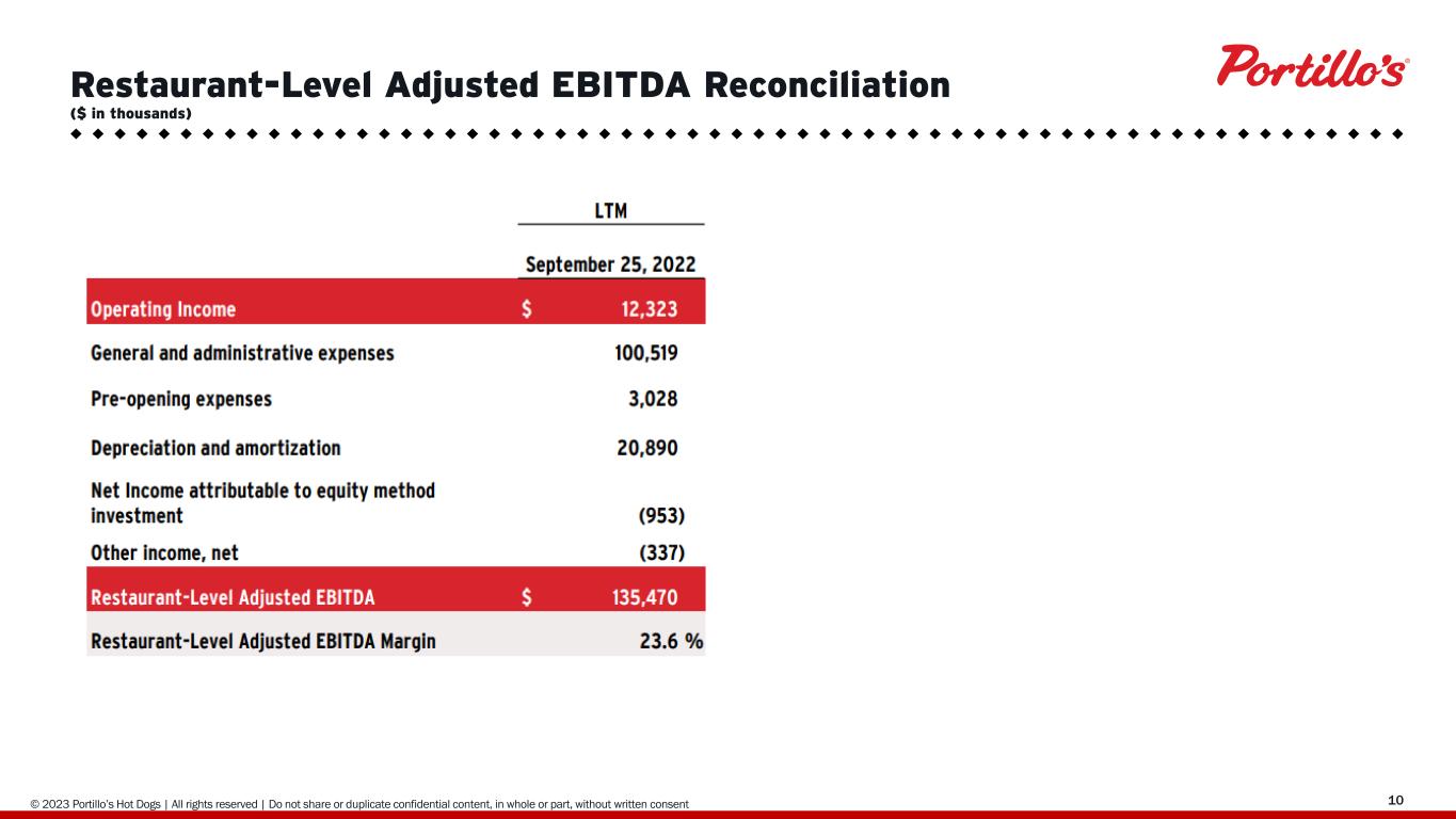 © 2019 Portillo’s Hot Dogs | All rights reserved | Do not share or duplicate confidential content, in whole or part, without written consent 1023 Restaurant-Level Adjusted EBITDA Reconciliation ($ in thousands)