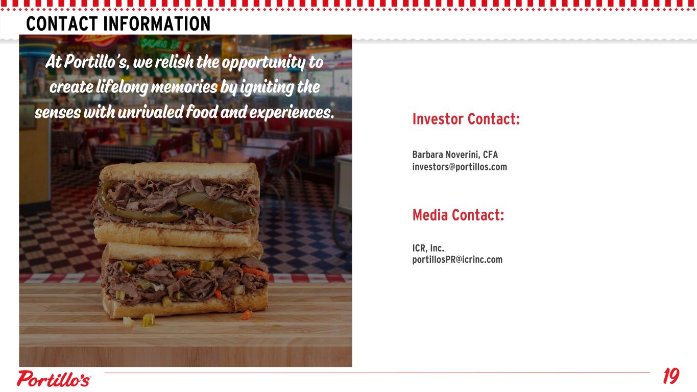CONTACT INFORMATION Investor Contact: Barbara Noverini, CFA investors@portillos.com Media Contact: ICR, Inc. portillosPR@icrinc.com
