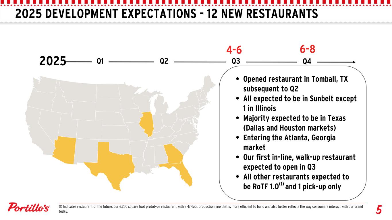 2025 DEVELOPMENT EXPECTATIONS - 12 NEW RESTAURANTS Q1 Q2 Q3 Q4 4-6 6-8 2025 • Opened restaurant in Tomball, TX subsequent to Q2 • All expected to be in Sunbelt except 1 in Illinois • Majority expected to be in Texas (Dallas and Houston markets) • Entering the Atlanta, Georgia market • Our first in-line, walk-up restaurant expected to open in Q3 • All other restaurants expected to be RoTF 1.0(1) and 1 pick-up only (1) Indicates restaurant of the future, our 6,250 square foot prototype restaurant with a 47-foot production line that is more efficient to build and also better reflects the way consumers interact with our brand today.