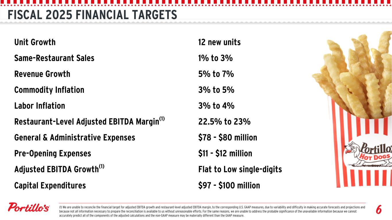 FISCAL 2025 FINANCIAL TARGETS (1) We are unable to reconcile the long-term outlook for Adjusted EBITDA growth to net income (loss), the corresponding U.S. GAAP measure, due to variability and difficulty in making accurate forecasts and projections and because not all information necessary to prepare the reconciliation is available to us without unreasonable efforts. For the same reasons, we are unable to address the probable significance of the unavailable information because we cannot accurately predict all of the components of the adjusted calculations and the non-GAAP measure may be materially different than the GAAP measure. Unit Growth 12 new units Same-Restaurant Sales 1% to 3% Revenue Growth 5% to 7% Commodity Inflation 3% to 5% Labor Inflation 3% to 4% Restaurant-Level Adjusted EBITDA Margin(1) 22.5% to 23% General & Administrative Expenses $78 - $80 million Pre-Opening Expenses $11 - $12 million Adjusted EBITDA Growth(1) Flat to Low single-digits Capital Expenditures $97 - $100 million (1) We are unable to reconcile the financial target for adjusted EBITDA growth and restaurant-level adjusted EBITDA margin, to the corresponding U.S. GAAP measures, due to variability and difficulty in making accurate forecasts and projections and because not all information necessary to prepare the reconciliation is available to us without unreasonable efforts. For the same reasons, we are unable to address the probable significance of the unavailable information because we cannot accurately predict all of the components of the adjusted calculations and the non-GAAP measure may be materially different than the GAAP measure. 1 1-2 2-3 6-7 Q1 2024 Q2 2024 Q3 2024 Q4 2024 New Restaurants by Quarter