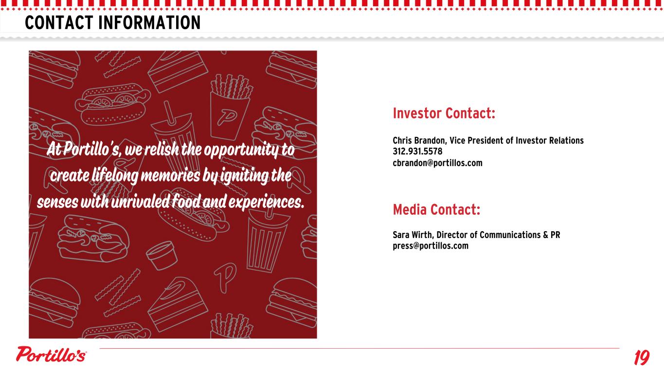 CONTACT INFORMATION Investor Contact: Chris Brandon, Vice President of Investor Relations 312.931.5578 cbrandon@portillos.com Media Contact: Sara Wirth, Director of Communications & PR press@portillos.com