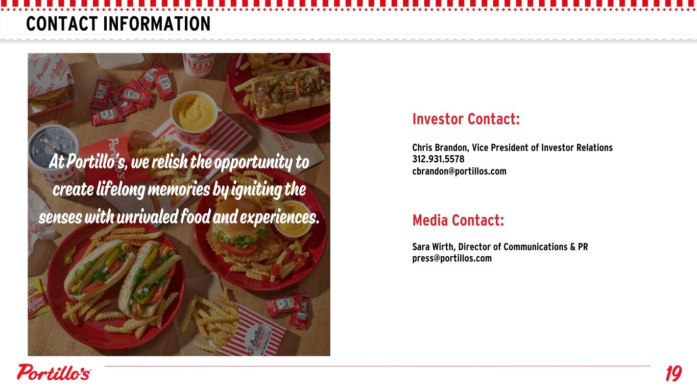 CONTACT INFORMATION Investor Contact: Chris Brandon, Vice President of Investor Relations 312.931.5578 cbrandon@portillos.com Media Contact: Sara Wirth, Director of Communications & PR press@portillos.com