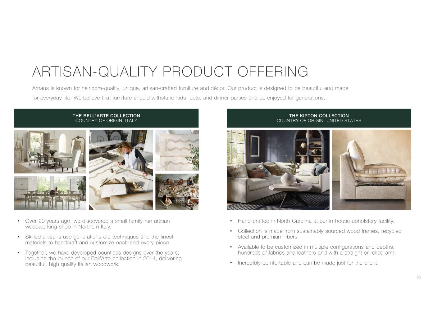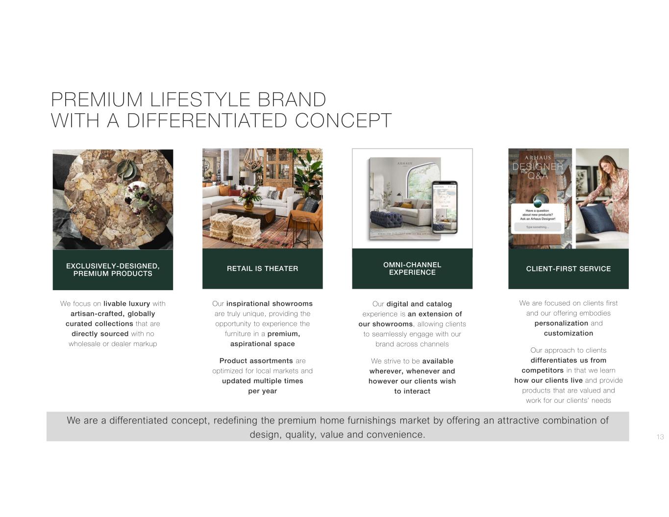 We are a differentiated concept, redefining the premium home furnishings market by offering an attractive combination of design, quality, value and convenience.