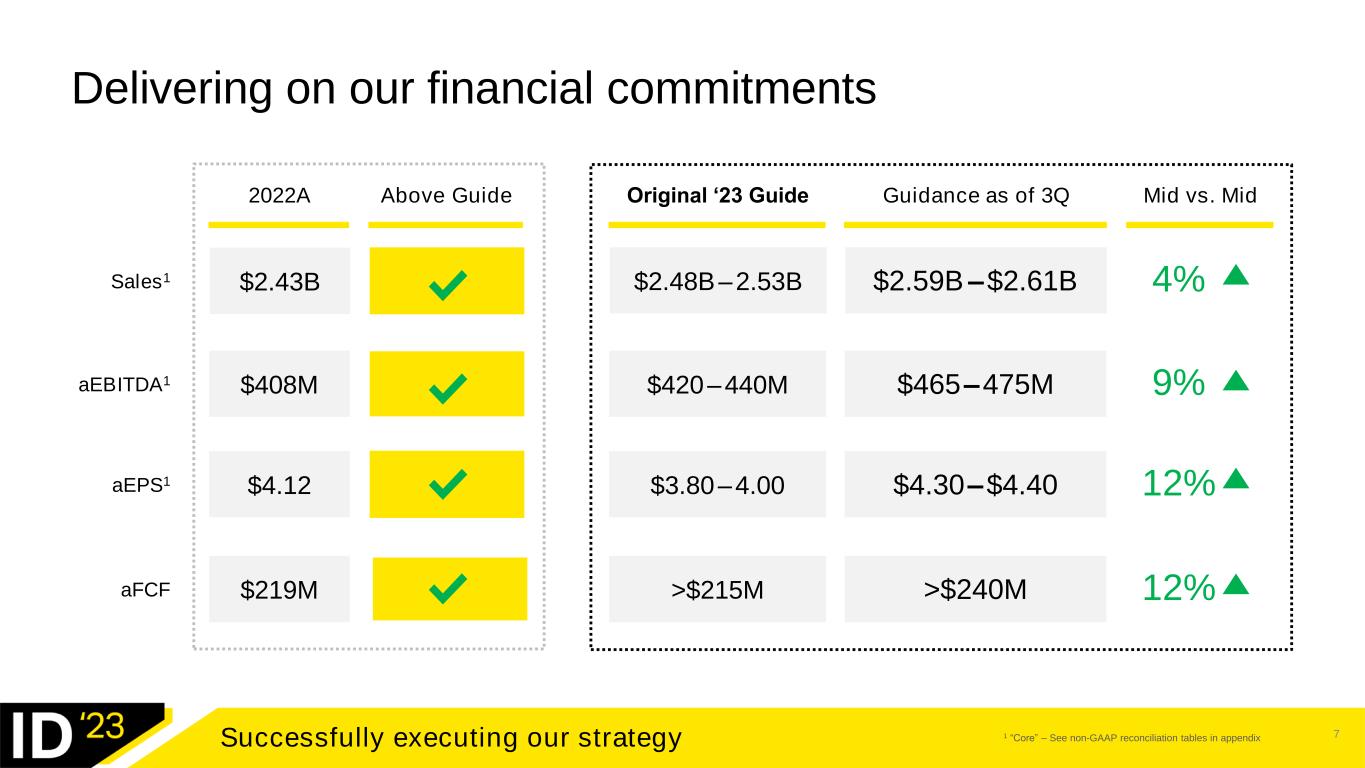 Delivering on our financial commitments Successfully executing our strategy 7 Sales1 aEBITDA1 aFCF aEPS1 $2.43B $408M $219M $4.12 $2.48B – 2.53B $420 – 440M >$215M $3.80 – 4.00 2022A Original ‘23 Guide Mid vs. Mid $2.59B – $2.61B $465 – 475M >$240M $4.30 – $4.40 Guidance as of 3QAbove Guide 4% 9% 12% 12% 1 “Core” – See non-GAAP reconciliation tables in appendix