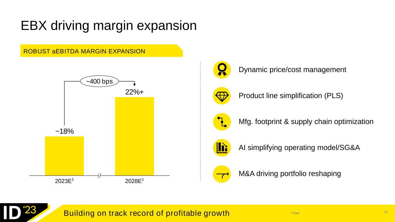 EBX driving margin expansion Building on track record of profitable growth 60 22%+ 2023E1 2028E1 ~18% ~400 bps Dynamic price/cost management Product line simplification (PLS) Mfg. footprint & supply chain optimization AI simplifying operating model/SG&A M&A driving portfolio reshaping ROBUST aEBITDA MARGIN EXPANSION 1 “Core”