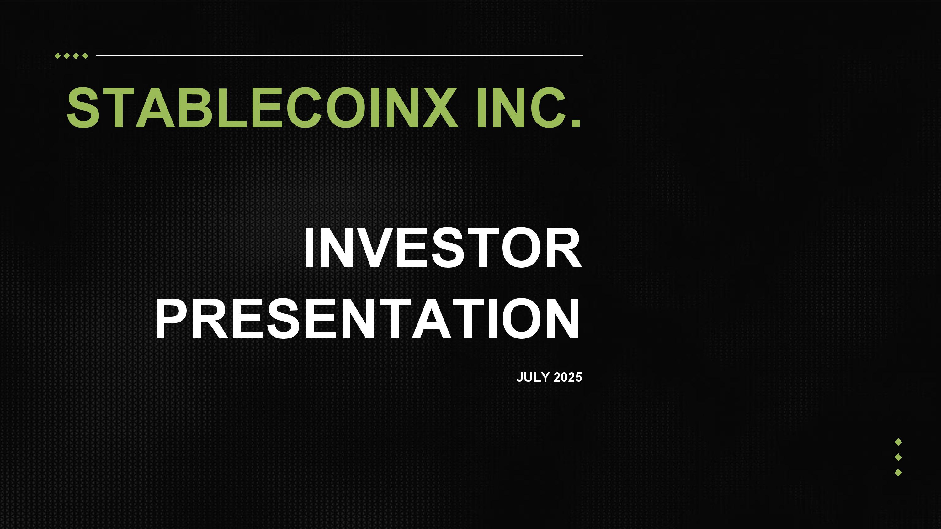 STABLECOINX INC. INVESTOR PRESENTATION JULY 2025