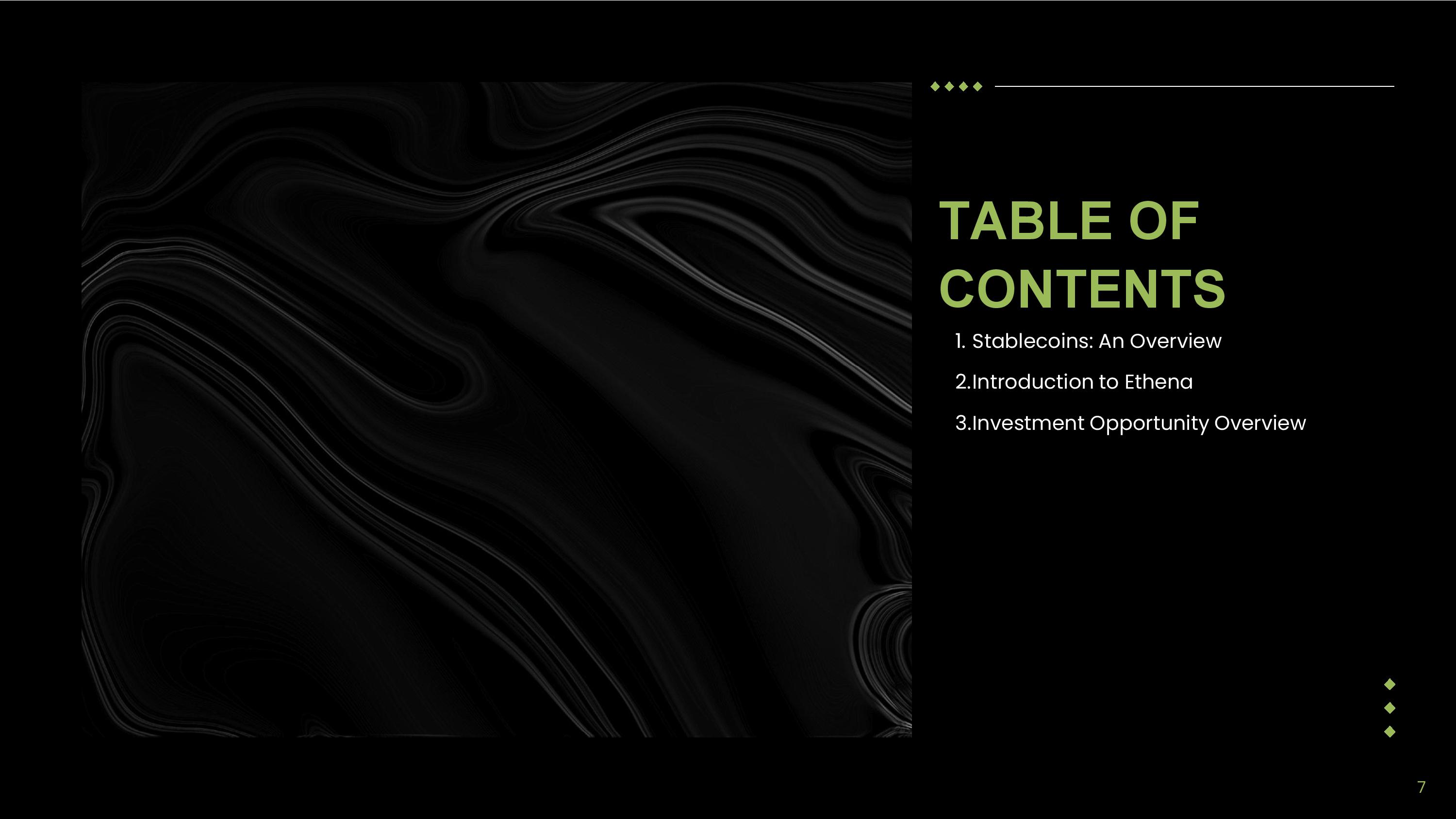 TABLE OF CONTENTS 1. Stablecoins: An Overview 2. Introduction to Ethena 3. Investment Opportunity Overview 7