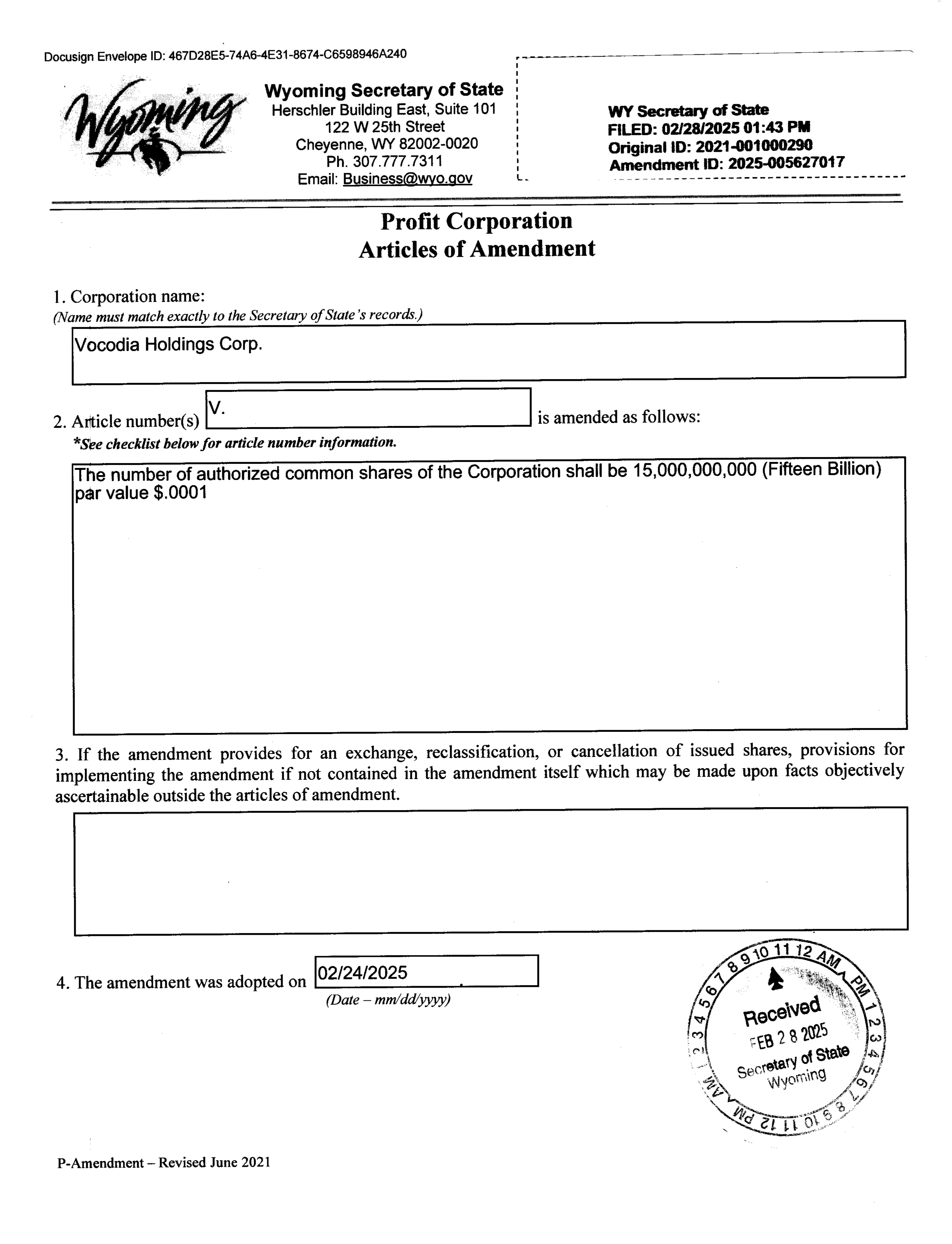 EX-3.2 3 ea023397801ex3-2_vocodia.htm AMENDMENT TO ARTICLES OF INCORPORATION
