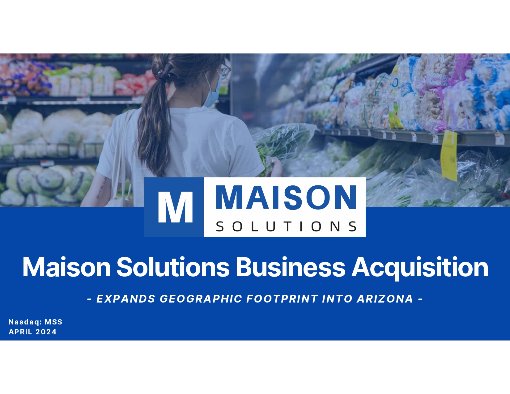 Maison Solutions Business Acquisition - EXPANDS GEOGRAPHIC FOOTPRINT INTO ARIZONA - Nasdaq: MSS APRIL 2024