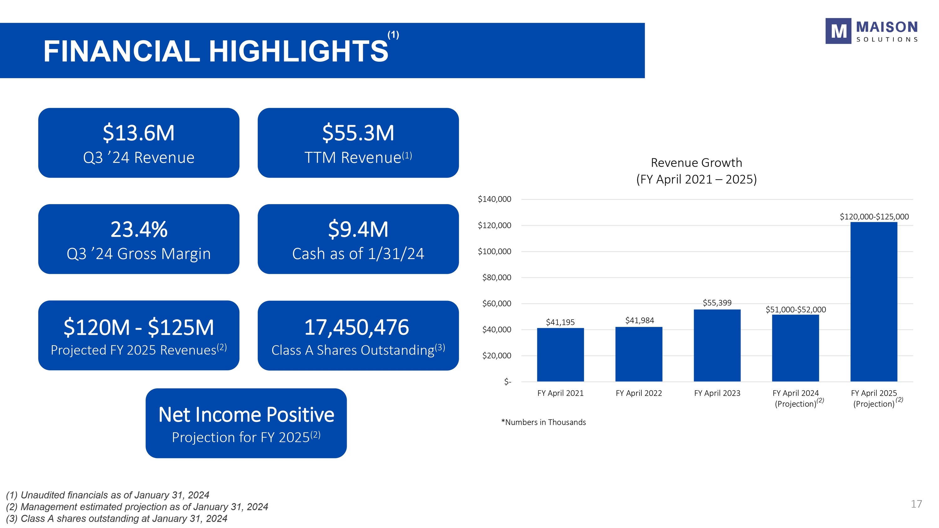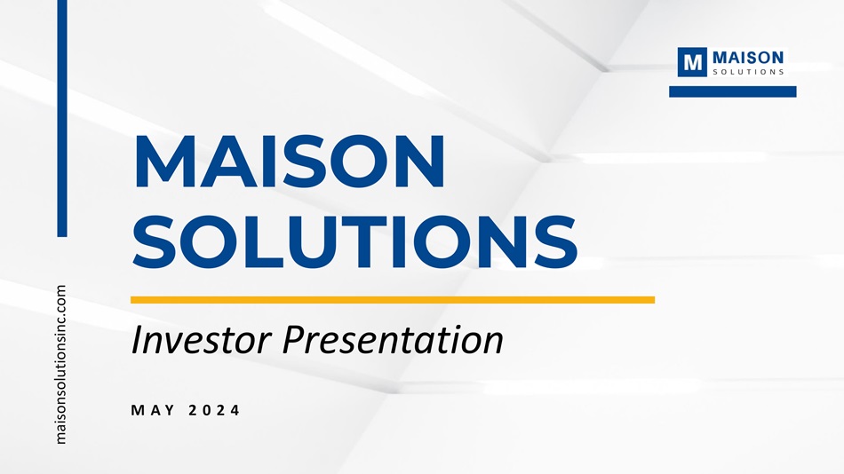 MAISON SOLUTIONS Investor Presentation maisonsolutionsinc.com MAY 2024